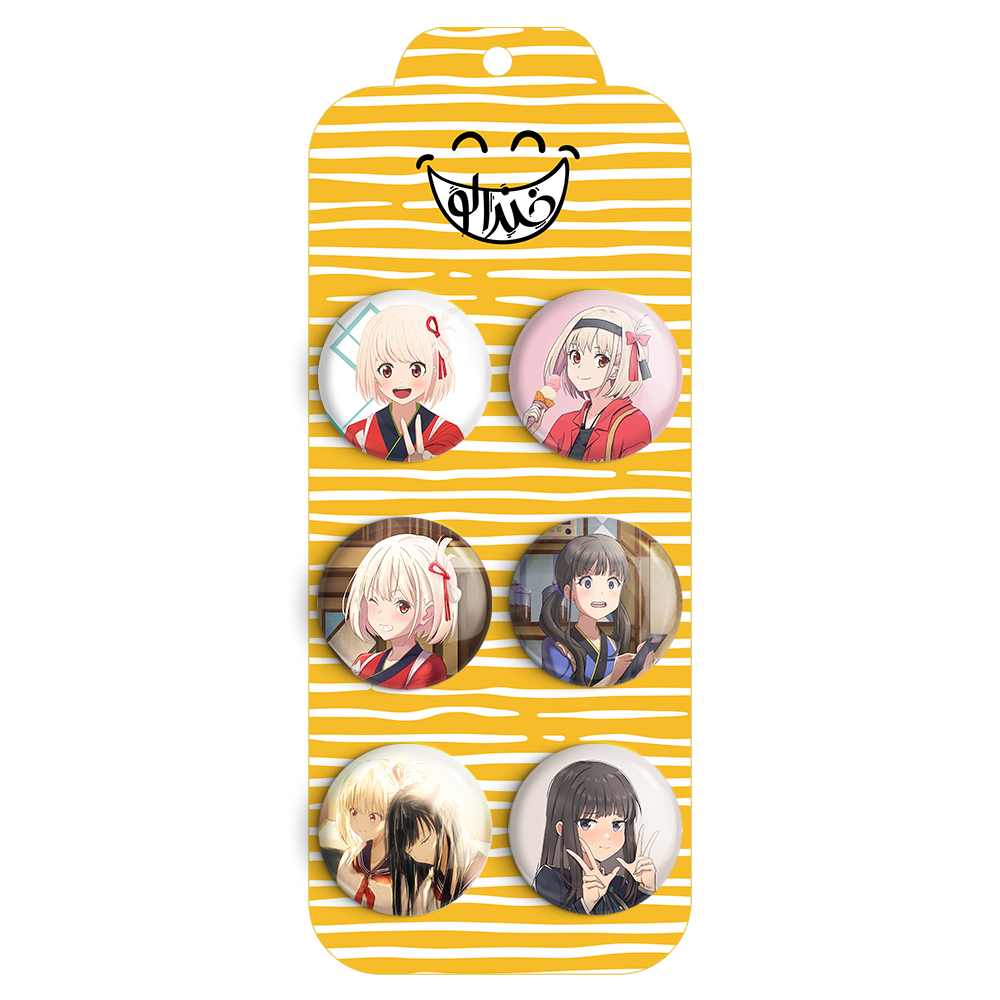 مجموعه 6 عددی پیکسل خندالو طرح انیمه لیکوریس ریکویل با روکش سلفون حرارتی براق ضدخش و قطعه پشتی رنگی تولید شده است. قطعات پشتی از میان 6 رنگ سفید، مشکی، صورتی، زرد، آبی و قرمز که با توجه به نوع و رنگبندی طرح روی پیکسل انتخاب شده اند تولید می شود و در هر بسته بندی مطابق عکس محصول می باشد.
