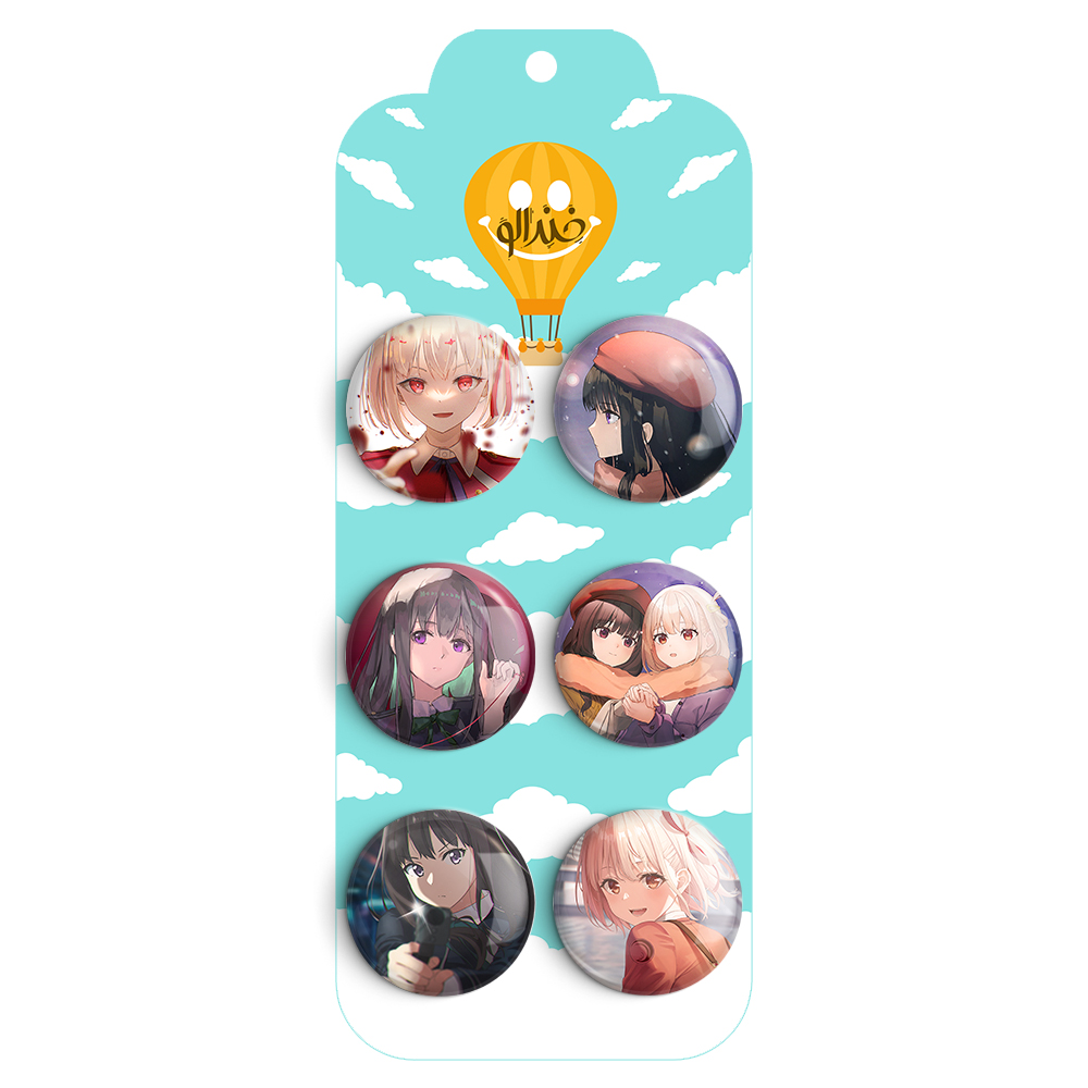 مجموعه 6 عددی پیکسل خندالو طرح انیمه لیکوریس ریکویل با روکش سلفون حرارتی براق ضدخش و قطعه پشتی رنگی تولید شده است. قطعات پشتی از میان 6 رنگ سفید، مشکی، صورتی، زرد، آبی و قرمز که با توجه به نوع و رنگبندی طرح روی پیکسل انتخاب شده اند تولید می شود و در هر بسته بندی مطابق عکس محصول می باشد.
