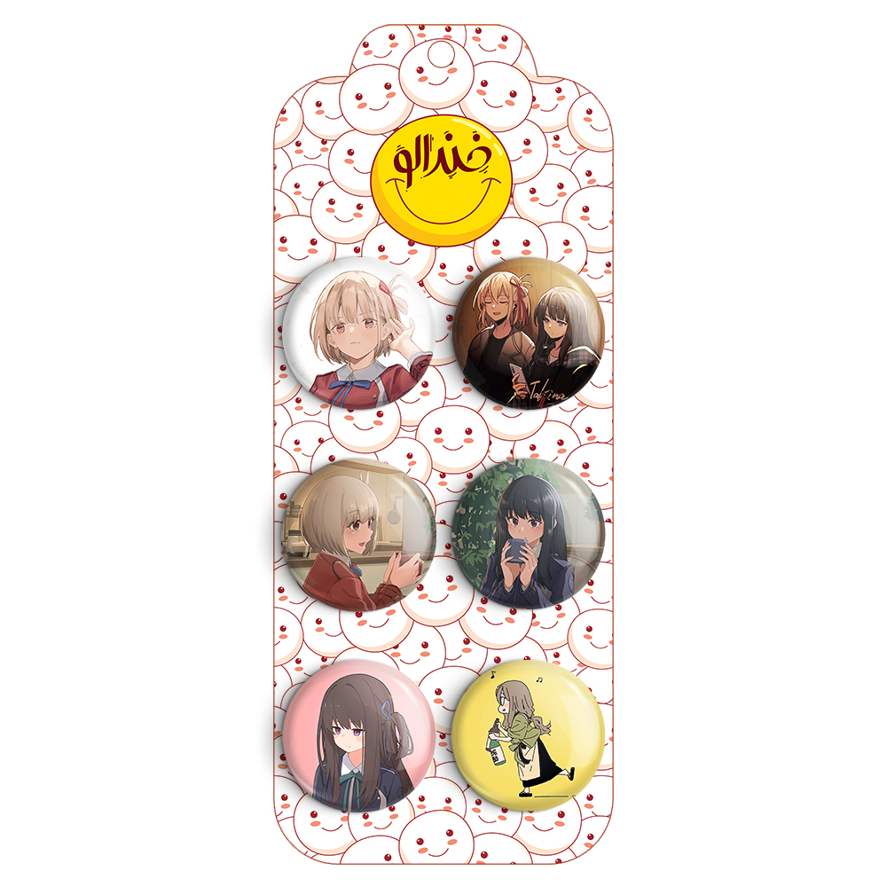 مجموعه 6 عددی پیکسل خندالو طرح انیمه لیکوریس ریکویل با روکش سلفون حرارتی براق ضدخش و قطعه پشتی رنگی تولید شده است. قطعات پشتی از میان 6 رنگ سفید، مشکی، صورتی، زرد، آبی و قرمز که با توجه به نوع و رنگبندی طرح روی پیکسل انتخاب شده اند تولید می شود و در هر بسته بندی مطابق عکس محصول می باشد.
