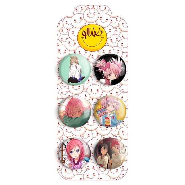 مجموعه 6 عددی پیکسل خندالو طرح انیمه مادوکا مجیکا با روکش سلفون حرارتی براق ضدخش و قطعه پشتی رنگی تولید شده است. قطعات پشتی از میان 6 رنگ سفید، مشکی، صورتی، زرد، آبی و قرمز که با توجه به نوع و رنگبندی طرح روی پیکسل انتخاب شده اند تولید می شود و در هر بسته بندی مطابق عکس محصول می باشد.