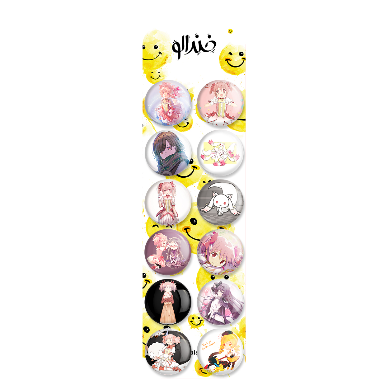 پک 12 عددی پیکسل خندالو طرح انیمه مادوکا مجیکا (Madoka Magica) با روکش سلفون حرارتی براق ضدخش و قطعه پشتی رنگی تولید شده است. قطعات پشتی از میان 6 رنگ سفید، مشکی، صورتی، زرد، آبی و قرمز که با توجه به نوع و رنگبندی طرح روی پیکسل انتخاب شده اند تولید می شود و در هر بسته بندی مطابق عکس محصول می باشد. قطعات پلاستیکی پشت پیکسل با سوزن یک تکه ثابت و بدون لغزش و جا به جایی، ایستایی بسیار بهتری نسبت به پشتی فلزی پیکسل دارند که این مهم در تولید این محصول نیز رعایت شده است.