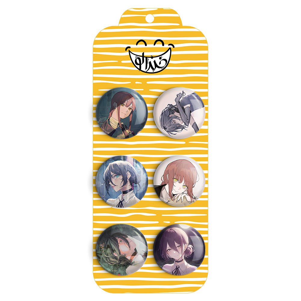 مجموعه 6 عددی پیکسل خندالو طرح انیمه مرد اره ای (Chainsaw Man) با روکش سلفون حرارتی براق ضدخش و قطعه پشتی رنگی تولید شده است. قطعات پشتی از میان 6 رنگ سفید، مشکی، صورتی، زرد، آبی و قرمز که با توجه به نوع و رنگبندی طرح روی پیکسل انتخاب شده اند تولید می شود و در هر بسته بندی مطابق عکس محصول می باشد.