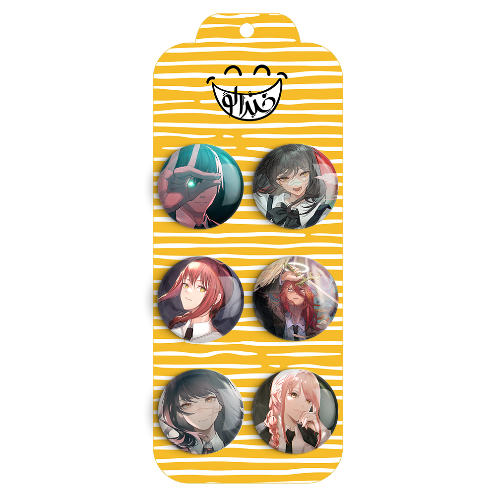 مجموعه 6 عددی پیکسل خندالو طرح انیمه مرد اره ای (Chainsaw Man) با روکش سلفون حرارتی براق ضدخش و قطعه پشتی رنگی تولید شده است. قطعات پشتی از میان 6 رنگ سفید، مشکی، صورتی، زرد، آبی و قرمز که با توجه به نوع و رنگبندی طرح روی پیکسل انتخاب شده اند تولید می شود و در هر بسته بندی مطابق عکس محصول می باشد.
