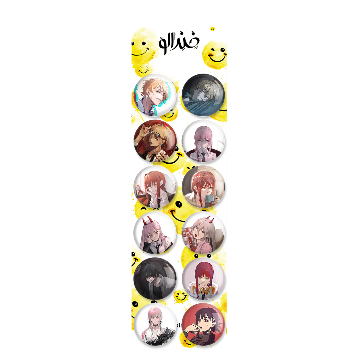 پک 12 عددی پیکسل خندالو طرح انیمه مرد اره ای (Chainsaw Man) با روکش سلفون حرارتی براق ضدخش و قطعه پشتی رنگی تولید شده است. قطعات پشتی از میان 6 رنگ سفید، مشکی، صورتی، زرد، آبی و قرمز که با توجه به نوع و رنگبندی طرح روی پیکسل انتخاب شده اند تولید می شود و در هر بسته بندی مطابق عکس محصول می باشد. قطعات پلاستیکی پشت پیکسل با سوزن یک تکه ثابت و بدون لغزش و جا به جایی، ایستایی بسیار بهتری نسبت به پشتی فلزی پیکسل دارند که این مهم در تولید این محصول نیز رعایت شده است.