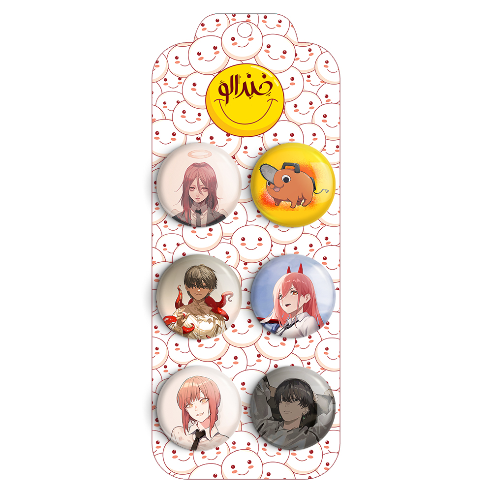 مجموعه 6 عددی پیکسل خندالو طرح انیمه مرد اره ای (Chainsaw Man) با روکش سلفون حرارتی براق ضدخش و قطعه پشتی رنگی تولید شده است. قطعات پشتی از میان 6 رنگ سفید، مشکی، صورتی، زرد، آبی و قرمز که با توجه به نوع و رنگبندی طرح روی پیکسل انتخاب شده اند تولید می شود و در هر بسته بندی مطابق عکس محصول می باشد.