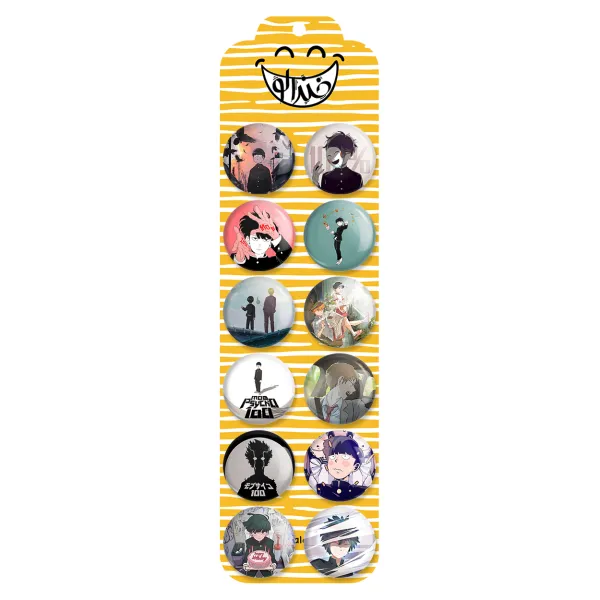 پک 12 عددی پیکسل خندالو طرح انیمه موب سایکو100 با روکش سلفون حرارتی براق ضدخش و قطعه پشتی رنگی تولید شده است. قطعات پشتی از میان 6 رنگ سفید، مشکی، صورتی، زرد، آبی و قرمز که با توجه به نوع و رنگبندی طرح روی پیکسل انتخاب شده اند تولید می شود و در هر بسته بندی مطابق عکس محصول می باشد. قطعات پلاستیکی پشت پیکسل با سوزن یک تکه ثابت و بدون لغزش و جا به جایی، ایستایی بسیار بهتری نسبت به پشتی فلزی پیکسل دارند که این مهم در تولید این محصول نیز رعایت شده است.