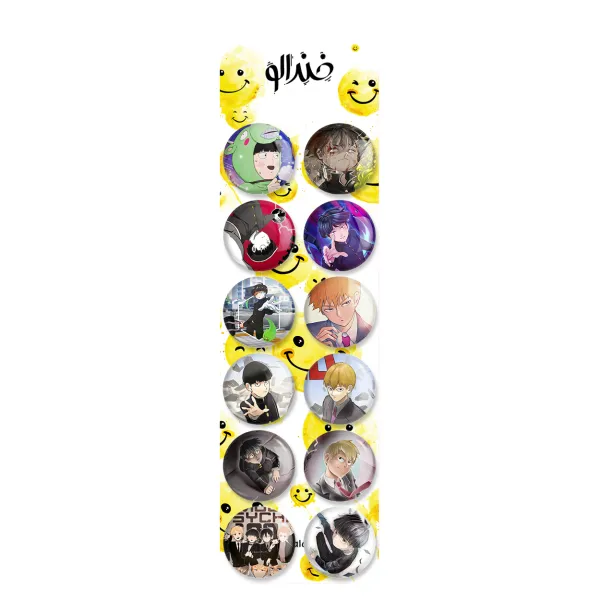 پک 12 عددی پیکسل خندالو طرح انیمه موب سایکو100 با روکش سلفون حرارتی براق ضدخش و قطعه پشتی رنگی تولید شده است. قطعات پشتی از میان 6 رنگ سفید، مشکی، صورتی، زرد، آبی و قرمز که با توجه به نوع و رنگبندی طرح روی پیکسل انتخاب شده اند تولید می شود و در هر بسته بندی مطابق عکس محصول می باشد. قطعات پلاستیکی پشت پیکسل با سوزن یک تکه ثابت و بدون لغزش و جا به جایی، ایستایی بسیار بهتری نسبت به پشتی فلزی پیکسل دارند که این مهم در تولید این محصول نیز رعایت شده است.