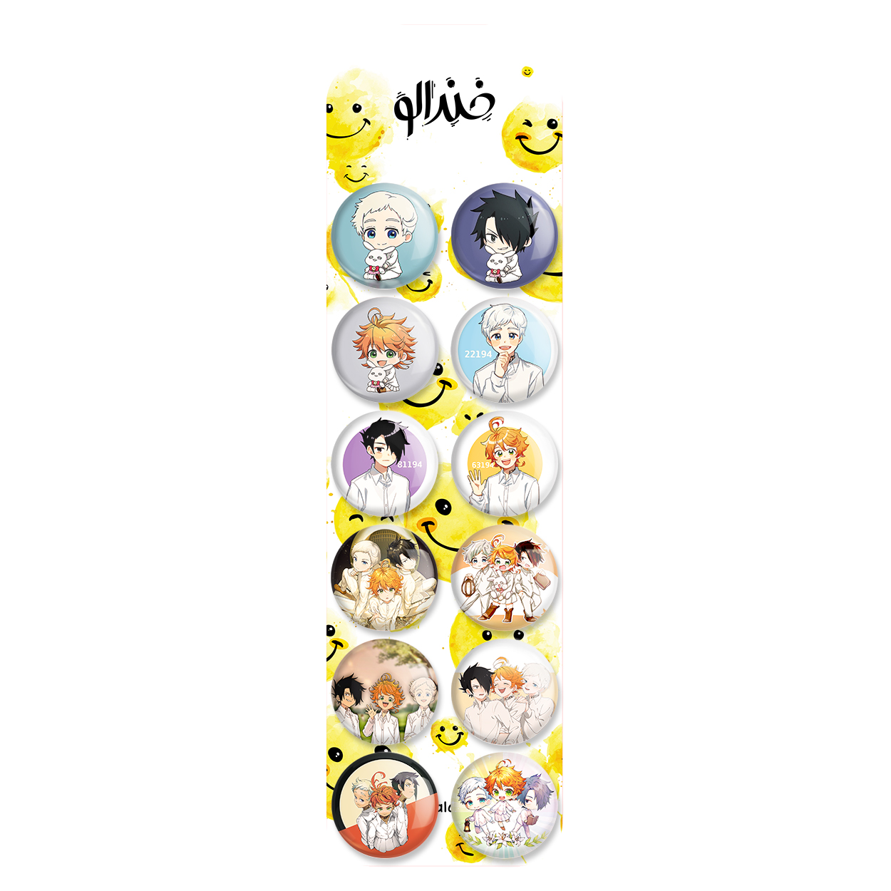 پک 12 عددی پیکسل خندالو طرح انیمه ناکجا آباد موعود با روکش سلفون حرارتی براق ضدخش و قطعه پشتی رنگی تولید شده است. قطعات پشتی از میان 6 رنگ سفید، مشکی، صورتی، زرد، آبی و قرمز که با توجه به نوع و رنگبندی طرح روی پیکسل انتخاب شده اند تولید می شود و در هر بسته بندی مطابق عکس محصول می باشد. قطعات پلاستیکی پشت پیکسل با سوزن یک تکه ثابت و بدون لغزش و جا به جایی، ایستایی بسیار بهتری نسبت به پشتی فلزی پیکسل دارند که این مهم در تولید این محصول نیز رعایت شده است. چاپ پیکسل طرح انیمه ناکجا آباد موعود بسته ۱۲ عددی نیز با دستگاه های استاندارد و با بهترین سطح کیفی صورت گرفته و طرح با شفافیتی مثال زدنی و با سلفونی بدون شکست نور بر روی پیکسل نقش بسته است.