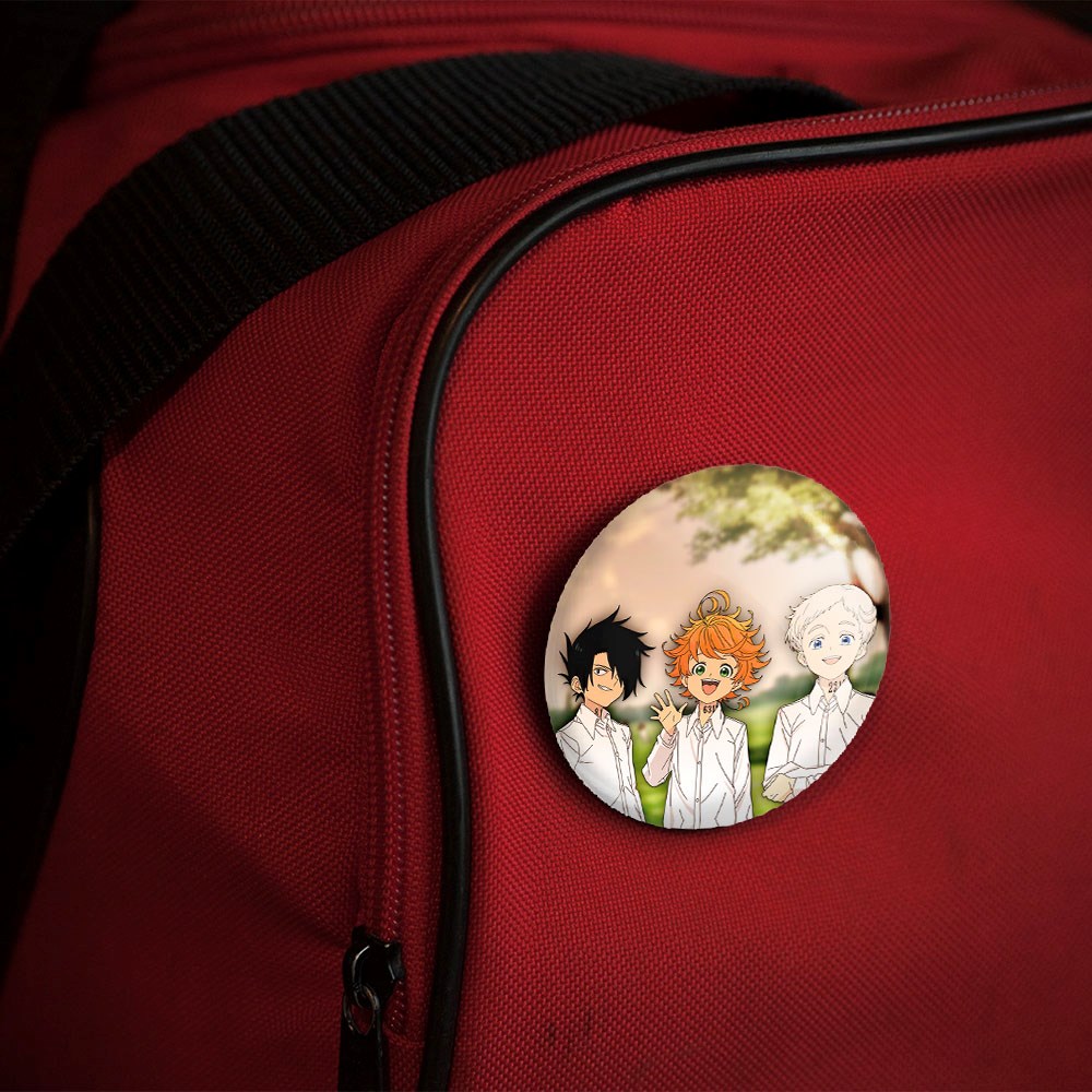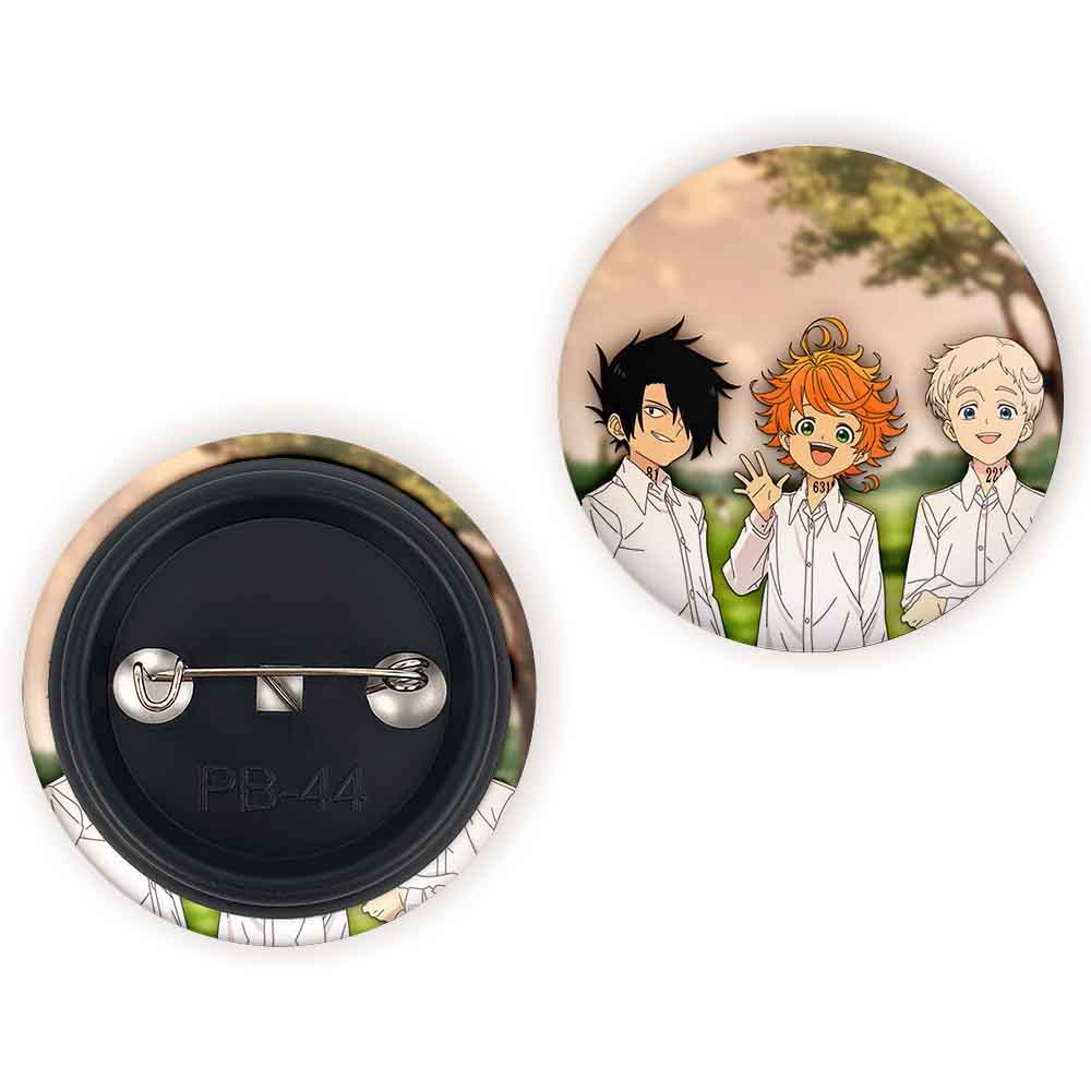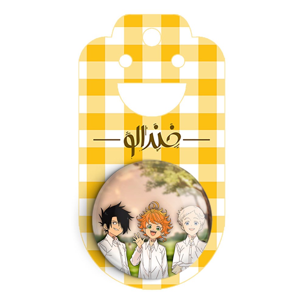 پیکسل 44 میلی متری انیمه ناکجا آباد موعود Promised Neverland خندالو با روکش سلفون حرارتی مات مخملی ضدخش و قطعه پشتی رنگی تولید شده است.پلاستیکی پشت پیکسل با سوزن یک تکه ثابت و بدون لغزش و جا به جایی، ایستایی بسیار بهتری نسبت به پشتی فلزی پیکسل دارند که این مهم در تولید این محصول نیز رعایت شده است.