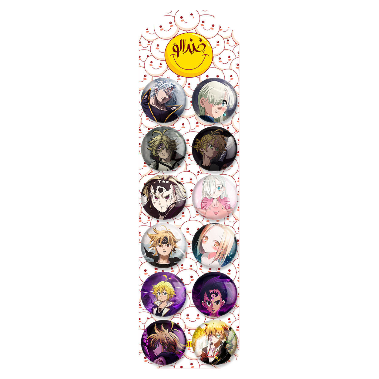 پک 12 عددی پیکسل خندالو طرح انیمه هفت گناه کبیره (Seven Deadly Sin) با روکش سلفون حرارتی براق ضدخش و قطعه پشتی رنگی تولید شده است. قطعات پشتی از میان 6 رنگ سفید، مشکی، صورتی، زرد، آبی و قرمز که با توجه به نوع و رنگبندی طرح روی پیکسل انتخاب شده اند تولید می شود و در هر بسته بندی مطابق عکس محصول می باشد. قطعات پلاستیکی پشت پیکسل با سوزن یک تکه ثابت و بدون لغزش و جا به جایی، ایستایی بسیار بهتری نسبت به پشتی فلزی پیکسل دارند که این مهم در تولید این محصول نیز رعایت شده است.
