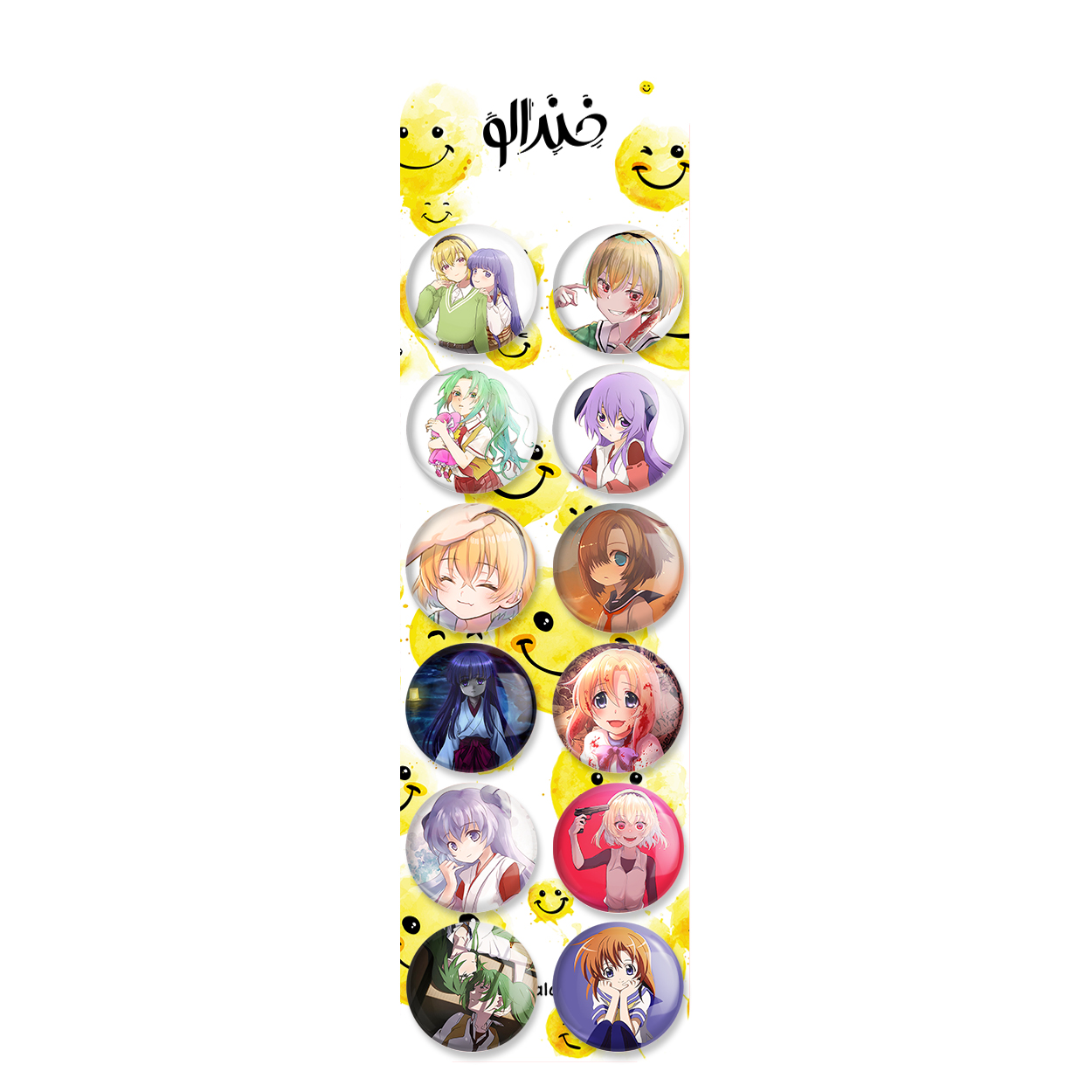 پک 12 عددی پیکسل خندالو طرح انیمه هیگوراشی وقتی اشک میریزند با روکش سلفون حرارتی براق ضدخش و قطعه پشتی رنگی تولید شده است. قطعات پشتی از میان 6 رنگ سفید، مشکی، صورتی، زرد، آبی و قرمز که با توجه به نوع و رنگبندی طرح روی پیکسل انتخاب شده اند تولید می شود و در هر بسته بندی مطابق عکس محصول می باشد. قطعات پلاستیکی پشت پیکسل با سوزن یک تکه ثابت و بدون لغزش و جا به جایی، ایستایی بسیار بهتری نسبت به پشتی فلزی پیکسل دارند که این مهم در تولید این محصول نیز رعایت شده است. چاپ پیکسل طرح انیمه هیگوراشی وقتی اشک میریزند بسته ۱۲ عددی نیز با دستگاه های استاندارد و با بهترین سطح کیفی صورت گرفته و طرح با شفافیتی مثال زدنی و با سلفونی بدون شکست نور بر روی پیکسل نقش بسته است.