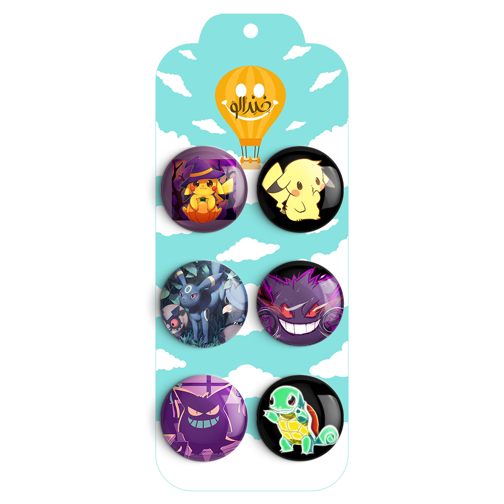 مجموعه 6 عددی پیکسل خندالو طرح انیمه پوکمون (Pokemon) با روکش سلفون حرارتی براق ضدخش و قطعه پشتی رنگی تولید شده است. قطعات پشتی از میان 6 رنگ سفید، مشکی، صورتی، زرد، آبی و قرمز که با توجه به نوع و رنگبندی طرح روی پیکسل انتخاب شده اند تولید می شود و در هر بسته بندی مطابق عکس محصول می باشد.