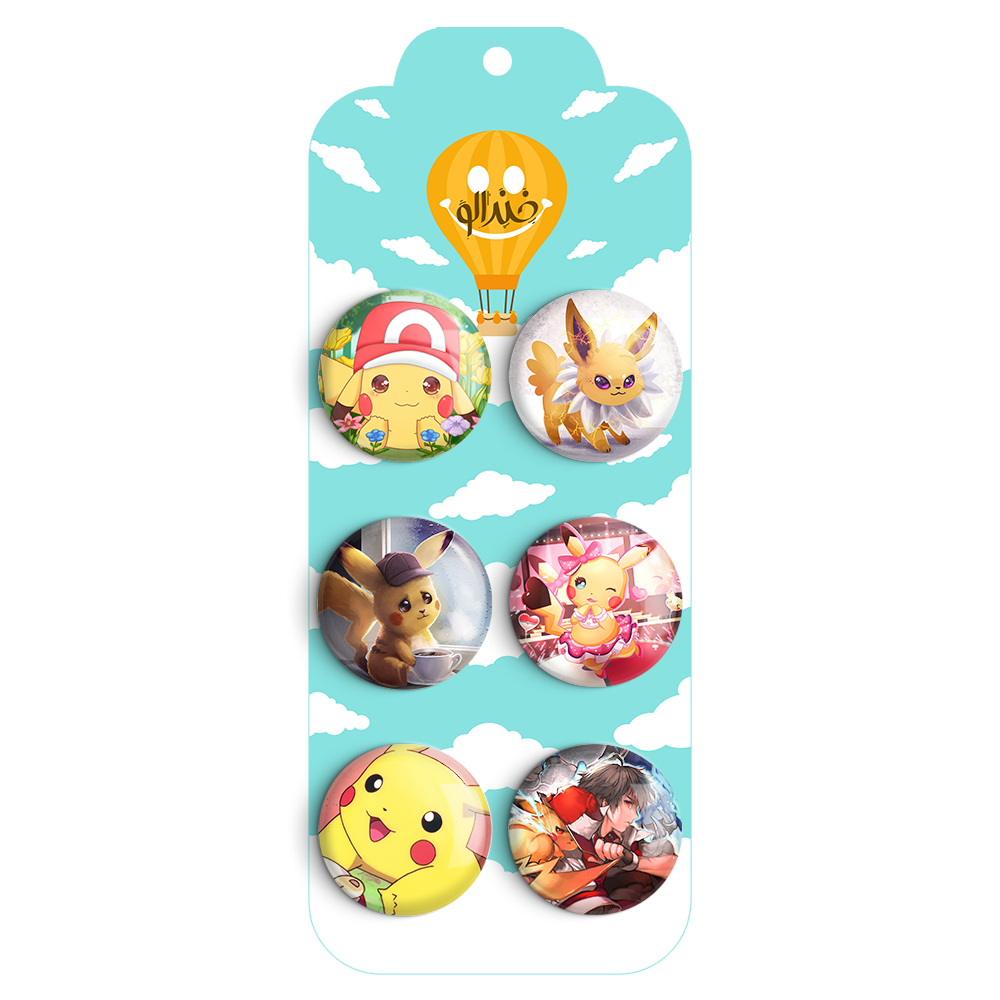 مجموعه 6 عددی پیکسل خندالو طرح انیمه پوکمون (Pokemon) با روکش سلفون حرارتی براق ضدخش و قطعه پشتی رنگی تولید شده است. قطعات پشتی از میان 6 رنگ سفید، مشکی، صورتی، زرد، آبی و قرمز که با توجه به نوع و رنگبندی طرح روی پیکسل انتخاب شده اند تولید می شود و در هر بسته بندی مطابق عکس محصول می باشد.