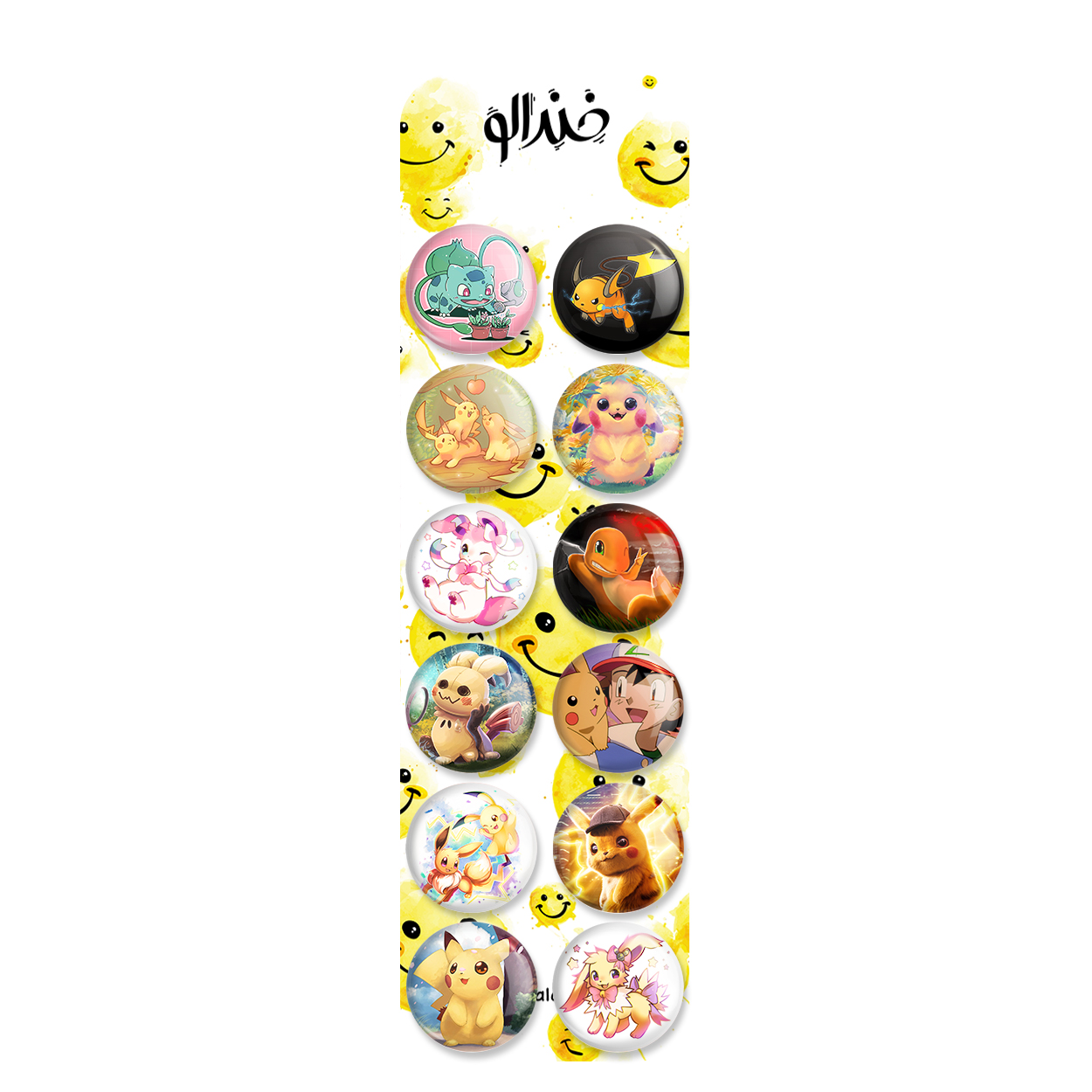پک 12 عددی پیکسل خندالو طرح انیمه پوکمون (Pokemon) با روکش سلفون حرارتی براق ضدخش و قطعه پشتی رنگی تولید شده است. قطعات پشتی از میان 6 رنگ سفید، مشکی، صورتی، زرد، آبی و قرمز که با توجه به نوع و رنگبندی طرح روی پیکسل انتخاب شده اند تولید می شود و در هر بسته بندی مطابق عکس محصول می باشد. قطعات پلاستیکی پشت پیکسل با سوزن یک تکه ثابت و بدون لغزش و جا به جایی، ایستایی بسیار بهتری نسبت به پشتی فلزی پیکسل دارند که این مهم در تولید این محصول نیز رعایت شده است.