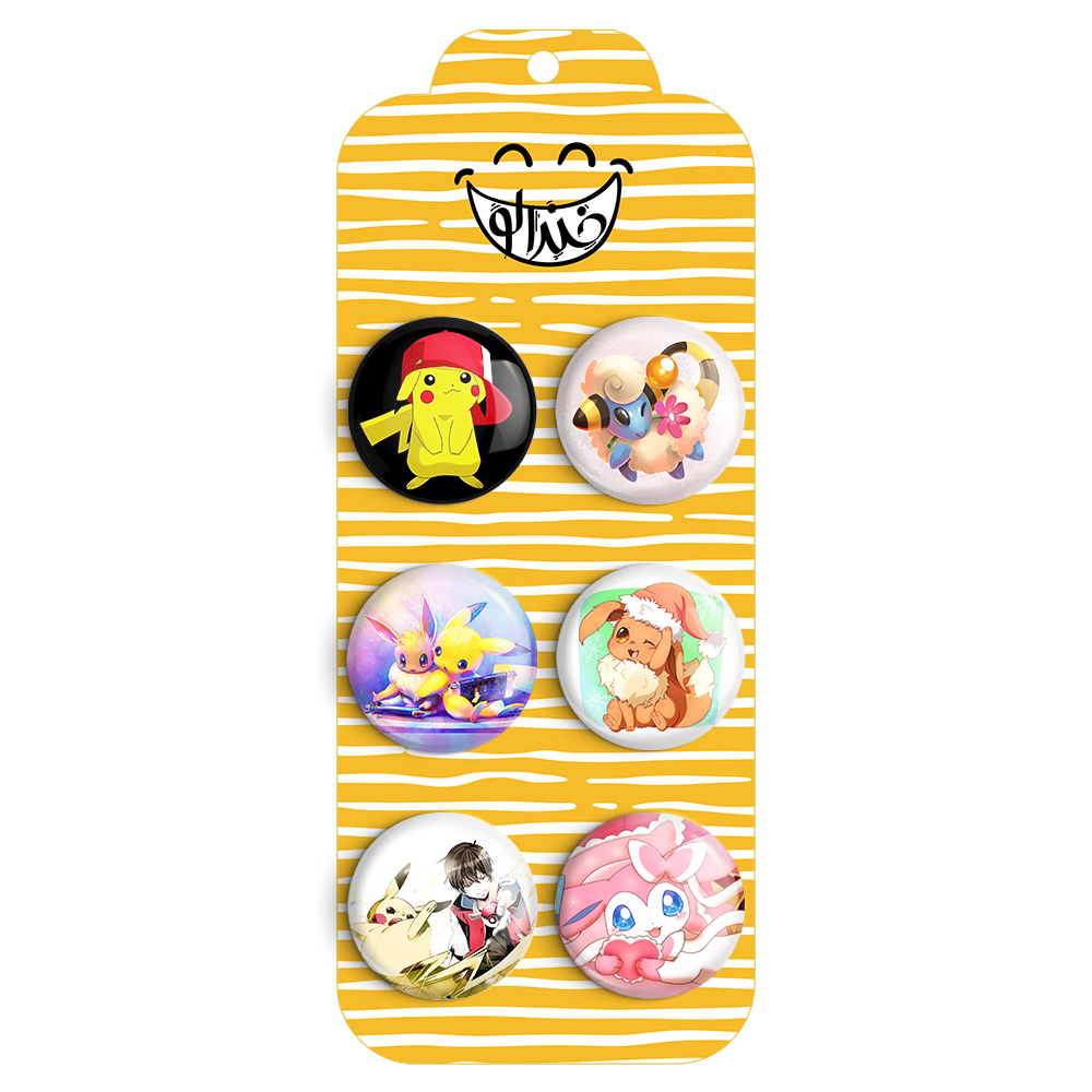 مجموعه 6 عددی پیکسل خندالو طرح انیمه پوکمون (Pokemon) با روکش سلفون حرارتی براق ضدخش و قطعه پشتی رنگی تولید شده است. قطعات پشتی از میان 6 رنگ سفید، مشکی، صورتی، زرد، آبی و قرمز که با توجه به نوع و رنگبندی طرح روی پیکسل انتخاب شده اند تولید می شود و در هر بسته بندی مطابق عکس محصول می باشد.