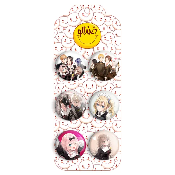 مجموعه 6 عددی پیکسل خندالو طرح انیمه کاگویا ساما با روکش سلفون حرارتی براق ضدخش و قطعه پشتی رنگی تولید شده است. قطعات پشتی از میان 6 رنگ سفید، مشکی، صورتی، زرد، آبی و قرمز که با توجه به نوع و رنگبندی طرح روی پیکسل انتخاب شده اند تولید می شود و در هر بسته بندی مطابق عکس محصول می باشد.