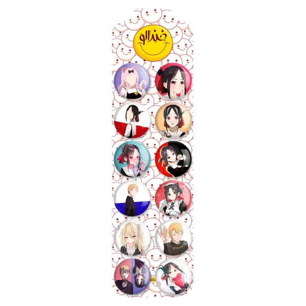 پک 12 عددی پیکسل خندالو طرح انیمه کاگویا ساما (Kaguya sama) با روکش سلفون حرارتی براق ضدخش و قطعه پشتی رنگی تولید شده است. قطعات پشتی از میان 6 رنگ سفید، مشکی، صورتی، زرد، آبی و قرمز که با توجه به نوع و رنگبندی طرح روی پیکسل انتخاب شده اند تولید می شود و در هر بسته بندی مطابق عکس محصول می باشد. قطعات پلاستیکی پشت پیکسل با سوزن یک تکه ثابت و بدون لغزش و جا به جایی، ایستایی بسیار بهتری نسبت به پشتی فلزی پیکسل دارند که این مهم در تولید این محصول نیز رعایت شده است.