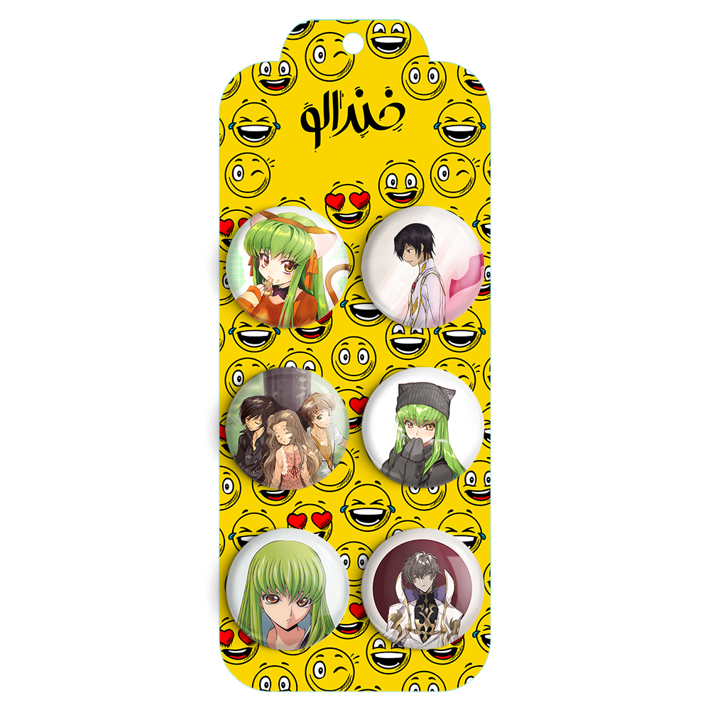 مجموعه 6 عددی پیکسل خندالو طرح انیمه کدگیاس (Code Geass) با روکش سلفون حرارتی براق ضدخش و قطعه پشتی رنگی تولید شده است. قطعات پشتی از میان 6 رنگ سفید، مشکی، صورتی، زرد، آبی و قرمز که با توجه به نوع و رنگبندی طرح روی پیکسل انتخاب شده اند تولید می شود و در هر بسته بندی مطابق عکس محصول می باشد.