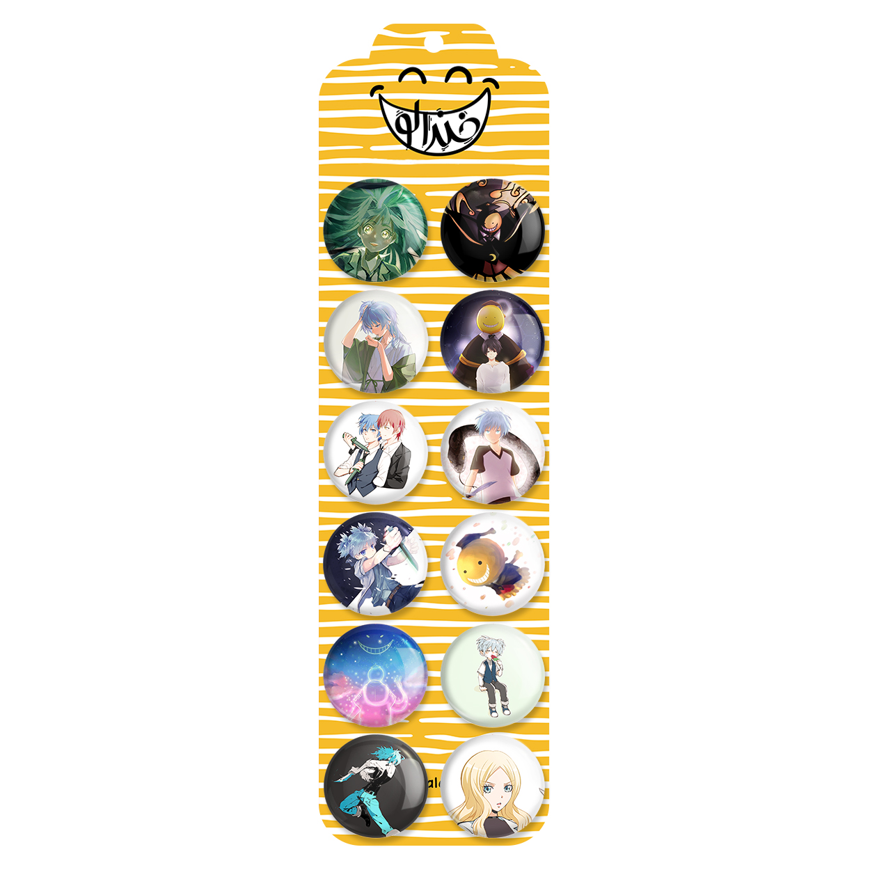 پک 12 عددی پیکسل خندالو طرح انیمه کلاس آدمکشی با روکش سلفون حرارتی براق ضدخش و قطعه پشتی رنگی تولید شده است. قطعات پشتی از میان 6 رنگ سفید، مشکی، صورتی، زرد، آبی و قرمز که با توجه به نوع و رنگبندی طرح روی پیکسل انتخاب شده اند تولید می شود و در هر بسته بندی مطابق عکس محصول می باشد. قطعات پلاستیکی پشت پیکسل با سوزن یک تکه ثابت و بدون لغزش و جا به جایی، ایستایی بسیار بهتری نسبت به پشتی فلزی پیکسل دارند که این مهم در تولید این محصول نیز رعایت شده است.