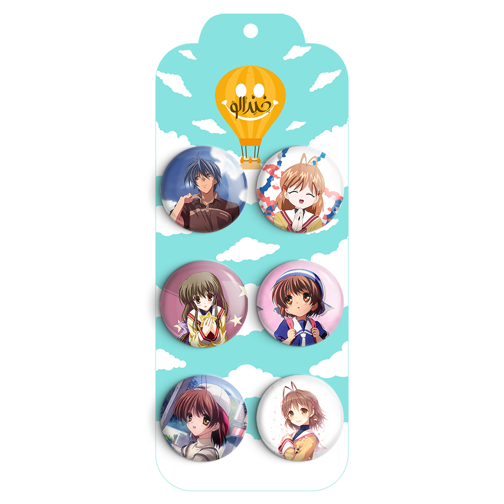 مجموعه 6 عددی پیکسل خندالو طرح انیمه کلاناد (Clannad) با روکش سلفون حرارتی براق ضدخش و قطعه پشتی رنگی تولید شده است. قطعات پشتی از میان 6 رنگ سفید، مشکی، صورتی، زرد، آبی و قرمز که با توجه به نوع و رنگبندی طرح روی پیکسل انتخاب شده اند تولید می شود و در هر بسته بندی مطابق عکس محصول می باشد.