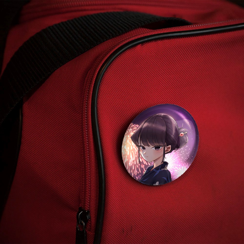 پیکسل 44 میلی متری انیمه کومی سان خندالو با روکش سلفون حرارتی مات مخملی ضدخش و قطعه پشتی رنگی تولید شده است.پلاستیکی پشت پیکسل با سوزن یک تکه ثابت و بدون لغزش و جا به جایی، ایستایی بسیار بهتری نسبت به پشتی فلزی پیکسل دارند که این مهم در تولید این محصول نیز رعایت شده است.