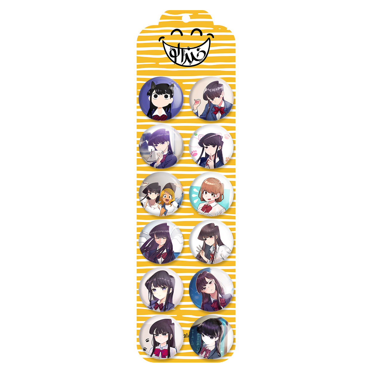پک 12 عددی پیکسل خندالو طرح انیمه کومی سان با روکش سلفون حرارتی براق ضدخش و قطعه پشتی رنگی تولید شده است. قطعات پشتی از میان 6 رنگ سفید، مشکی، صورتی، زرد، آبی و قرمز که با توجه به نوع و رنگبندی طرح روی پیکسل انتخاب شده اند تولید می شود و در هر بسته بندی مطابق عکس محصول می باشد. قطعات پلاستیکی پشت پیکسل با سوزن یک تکه ثابت و بدون لغزش و جا به جایی، ایستایی بسیار بهتری نسبت به پشتی فلزی پیکسل دارند که این مهم در تولید این محصول نیز رعایت شده است.