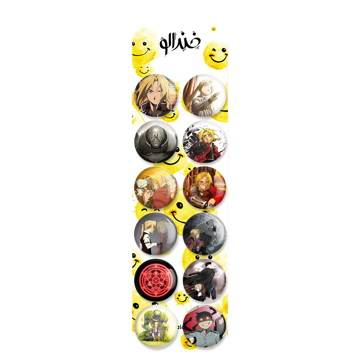پک 12 عددی پیکسل خندالو طرح انیمه کیمیاگر تمام فلزی با روکش سلفون حرارتی براق ضدخش و قطعه پشتی رنگی تولید شده است. قطعات پشتی از میان 6 رنگ سفید، مشکی، صورتی، زرد، آبی و قرمز که با توجه به نوع و رنگبندی طرح روی پیکسل انتخاب شده اند تولید می شود و در هر بسته بندی مطابق عکس محصول می باشد. قطعات پلاستیکی پشت پیکسل با سوزن یک تکه ثابت و بدون لغزش و جا به جایی، ایستایی بسیار بهتری نسبت به پشتی فلزی پیکسل دارند که این مهم در تولید این محصول نیز رعایت شده است.