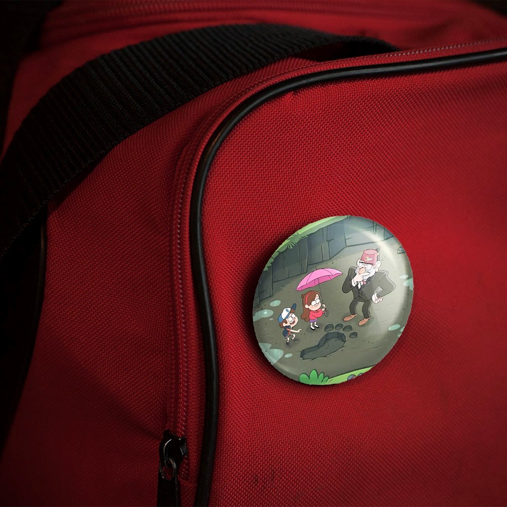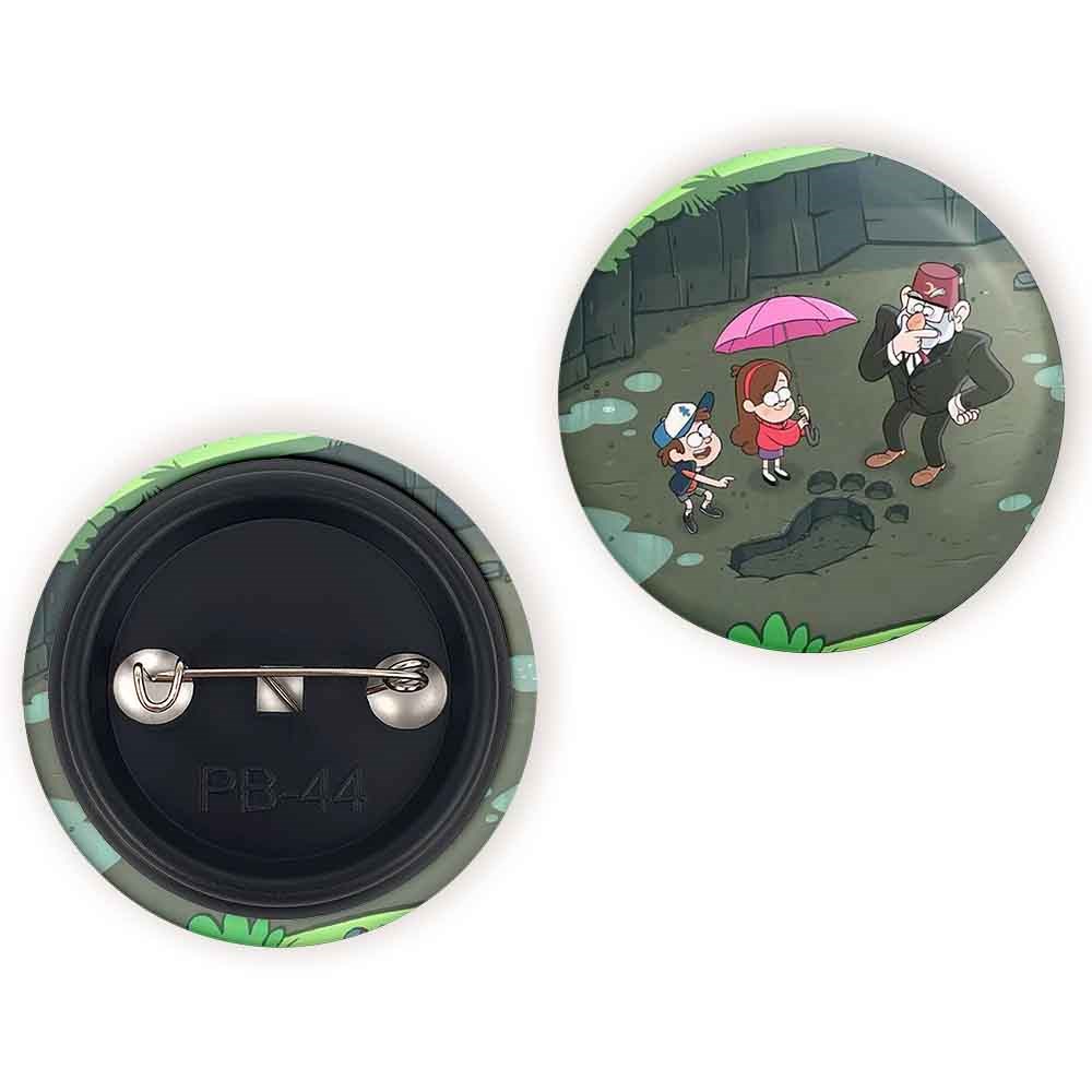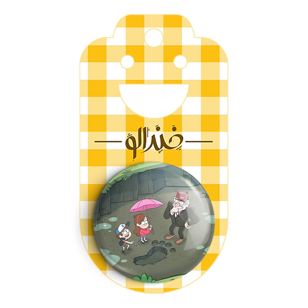 پیکسل 44 میلی متری انیمیشن آبشار جاذبه Gravity Falls خندالو با روکش سلفون حرارتی مات مخملی ضدخش و قطعه پشتی رنگی تولید شده است.پلاستیکی پشت پیکسل با سوزن یک تکه ثابت و بدون لغزش و جا به جایی، ایستایی بسیار بهتری نسبت به پشتی فلزی پیکسل دارند که این مهم در تولید این محصول نیز رعایت شده است.