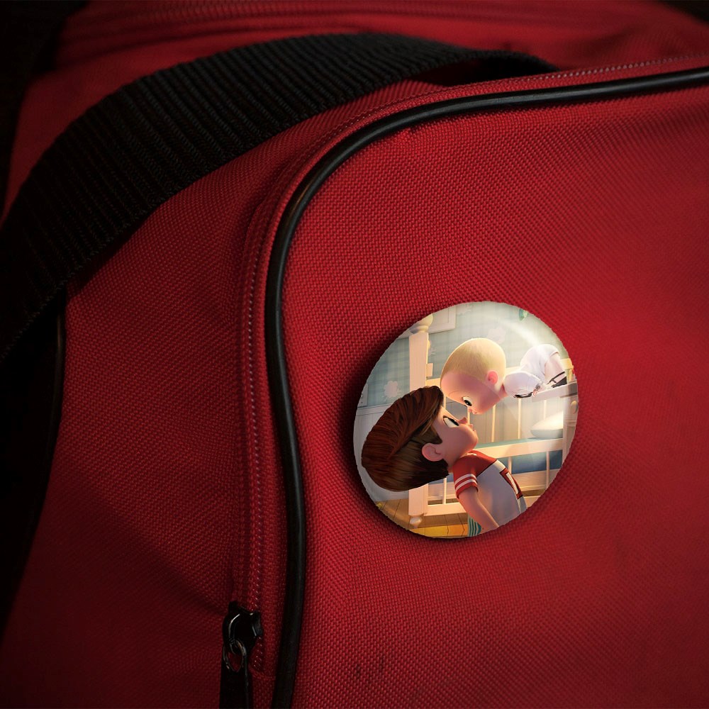 پیکسل 44 میلی متری انیمیشن بچه رئیس The Boss Baby خندالو با روکش سلفون حرارتی مات مخملی ضدخش و قطعه پشتی رنگی تولید شده است.پلاستیکی پشت پیکسل با سوزن یک تکه ثابت و بدون لغزش و جا به جایی، ایستایی بسیار بهتری نسبت به پشتی فلزی پیکسل دارند که این مهم در تولید این محصول نیز رعایت شده است.