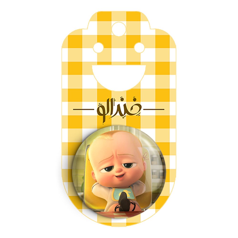 پیکسل 44 میلی متری انیمیشن بچه رئیس The Boss Baby خندالو با روکش سلفون حرارتی مات مخملی ضدخش و قطعه پشتی رنگی تولید شده است.پلاستیکی پشت پیکسل با سوزن یک تکه ثابت و بدون لغزش و جا به جایی، ایستایی بسیار بهتری نسبت به پشتی فلزی پیکسل دارند که این مهم در تولید این محصول نیز رعایت شده است.