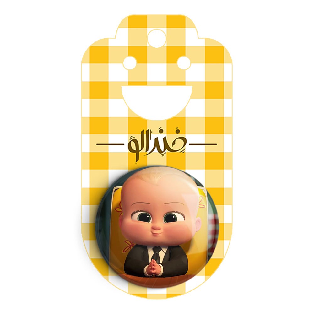 پیکسل 44 میلی متری انیمیشن بچه رئیس The Boss Baby خندالو با روکش سلفون حرارتی مات مخملی ضدخش و قطعه پشتی رنگی تولید شده است.پلاستیکی پشت پیکسل با سوزن یک تکه ثابت و بدون لغزش و جا به جایی، ایستایی بسیار بهتری نسبت به پشتی فلزی پیکسل دارند که این مهم در تولید این محصول نیز رعایت شده است.