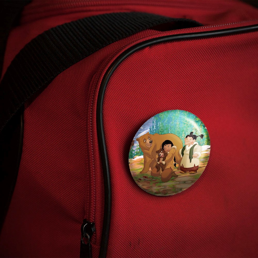 پیکسل 44 میلی متری انیمیشن خرس برادر Brother Bear خندالو با روکش سلفون حرارتی مات مخملی ضدخش و قطعه پشتی رنگی تولید شده است.پلاستیکی پشت پیکسل با سوزن یک تکه ثابت و بدون لغزش و جا به جایی، ایستایی بسیار بهتری نسبت به پشتی فلزی پیکسل دارند که این مهم در تولید این محصول نیز رعایت شده است.