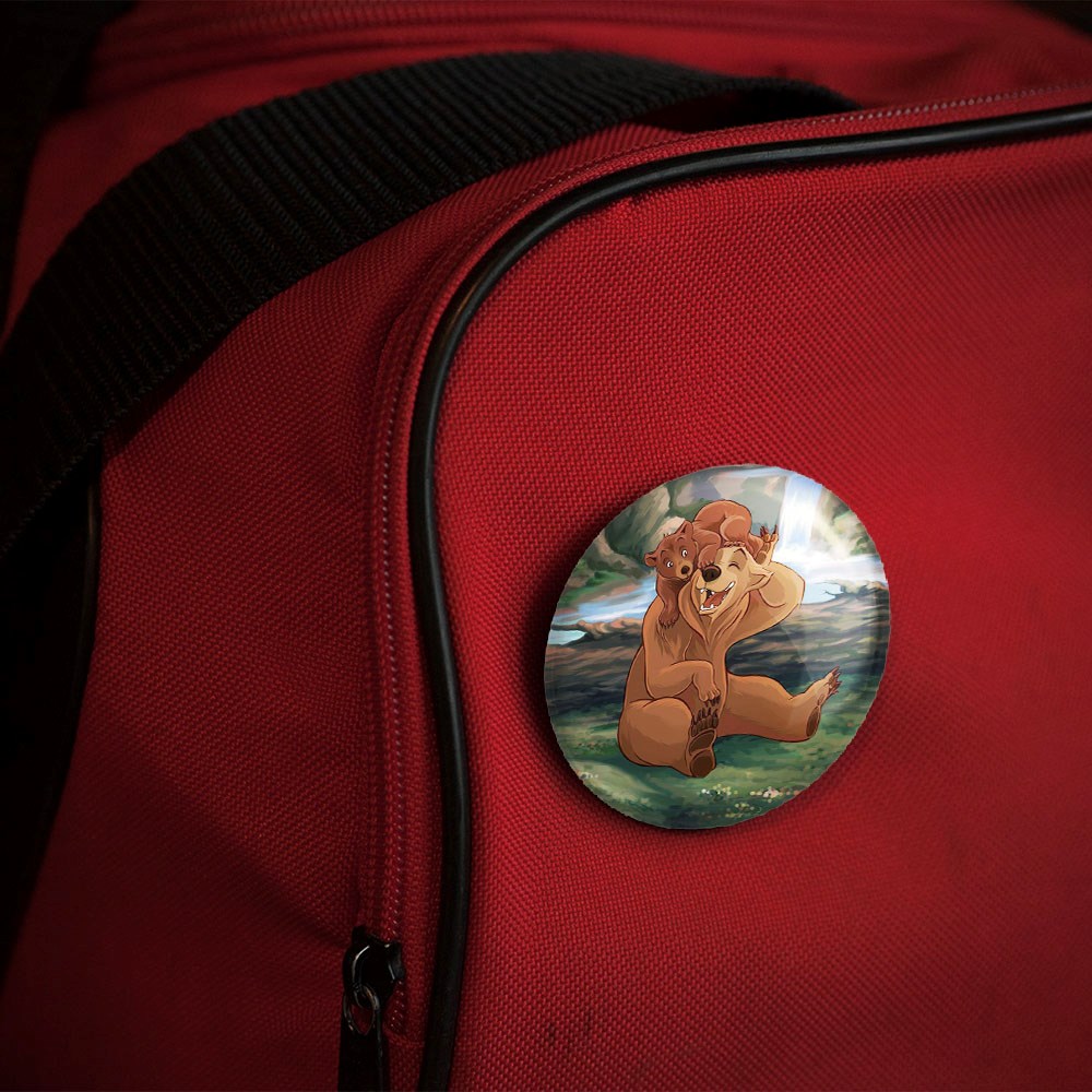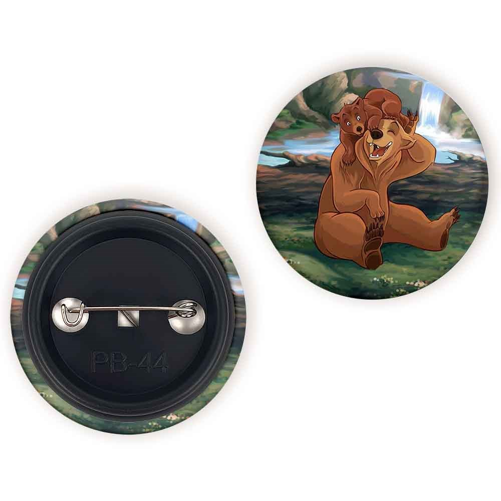پیکسل 44 میلی متری انیمیشن خرس برادر Brother Bear خندالو با روکش سلفون حرارتی مات مخملی ضدخش و قطعه پشتی رنگی تولید شده است.پلاستیکی پشت پیکسل با سوزن یک تکه ثابت و بدون لغزش و جا به جایی، ایستایی بسیار بهتری نسبت به پشتی فلزی پیکسل دارند که این مهم در تولید این محصول نیز رعایت شده است.