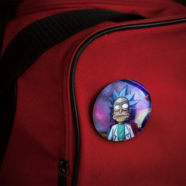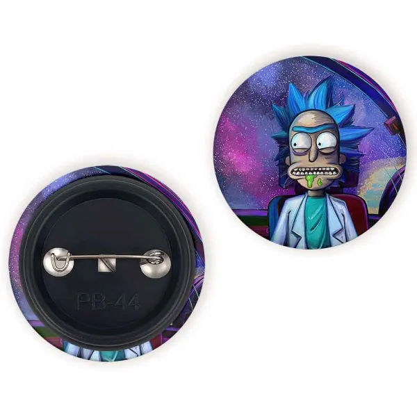 پیکسل 44 میلی متری انیمیشن ریک و مورتی Rick and Mort خندالو با روکش سلفون حرارتی مات مخملی ضدخش و قطعه پشتی رنگی تولید شده است.پلاستیکی پشت پیکسل با سوزن یک تکه ثابت و بدون لغزش و جا به جایی، ایستایی بسیار بهتری نسبت به پشتی فلزی پیکسل دارند که این مهم در تولید این محصول نیز رعایت شده است.
