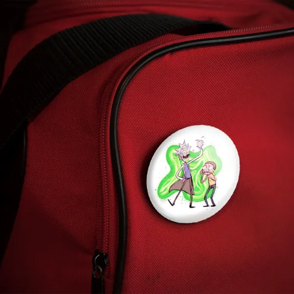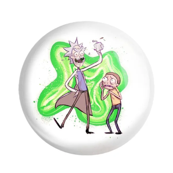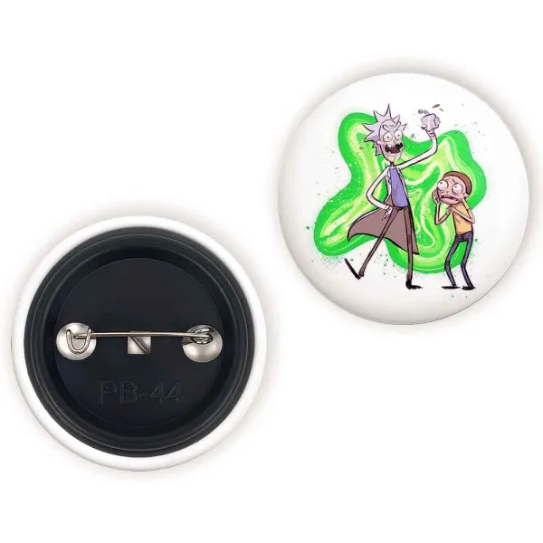 پیکسل 44 میلی متری انیمیشن ریک و مورتی Rick and Mort خندالو با روکش سلفون حرارتی مات مخملی ضدخش و قطعه پشتی رنگی تولید شده است.پلاستیکی پشت پیکسل با سوزن یک تکه ثابت و بدون لغزش و جا به جایی، ایستایی بسیار بهتری نسبت به پشتی فلزی پیکسل دارند که این مهم در تولید این محصول نیز رعایت شده است.