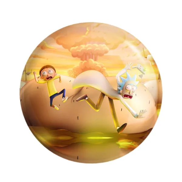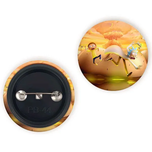 پیکسل 44 میلی متری انیمیشن ریک و مورتی Rick and Mort خندالو با روکش سلفون حرارتی مات مخملی ضدخش و قطعه پشتی رنگی تولید شده است.پلاستیکی پشت پیکسل با سوزن یک تکه ثابت و بدون لغزش و جا به جایی، ایستایی بسیار بهتری نسبت به پشتی فلزی پیکسل دارند که این مهم در تولید این محصول نیز رعایت شده است.