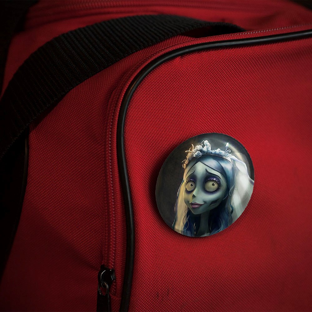 پیکسل 44 میلی متری انیمیشن عروس مردگان خندالو با روکش سلفون حرارتی مات مخملی ضدخش و قطعه پشتی رنگی تولید شده است.پلاستیکی پشت پیکسل با سوزن یک تکه ثابت و بدون لغزش و جا به جایی، ایستایی بسیار بهتری نسبت به پشتی فلزی پیکسل دارند که این مهم در تولید این محصول نیز رعایت شده است.