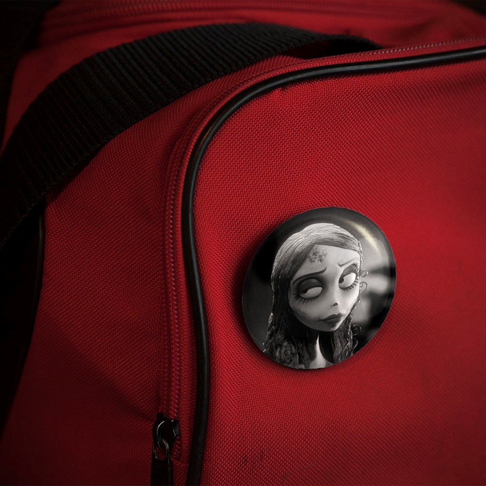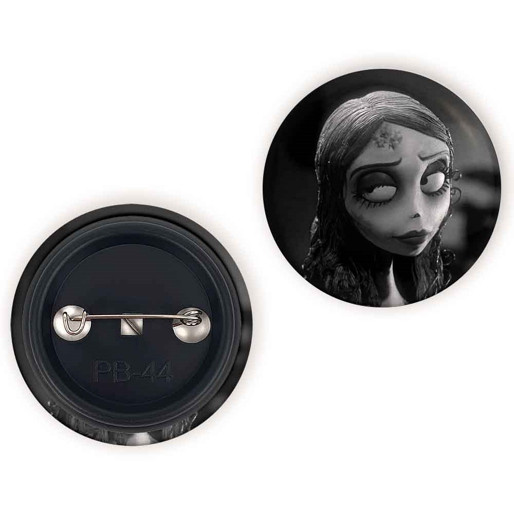 پیکسل 44 میلی متری انیمیشن عروس مردگان خندالو با روکش سلفون حرارتی مات مخملی ضدخش و قطعه پشتی رنگی تولید شده است.پلاستیکی پشت پیکسل با سوزن یک تکه ثابت و بدون لغزش و جا به جایی، ایستایی بسیار بهتری نسبت به پشتی فلزی پیکسل دارند که این مهم در تولید این محصول نیز رعایت شده است.