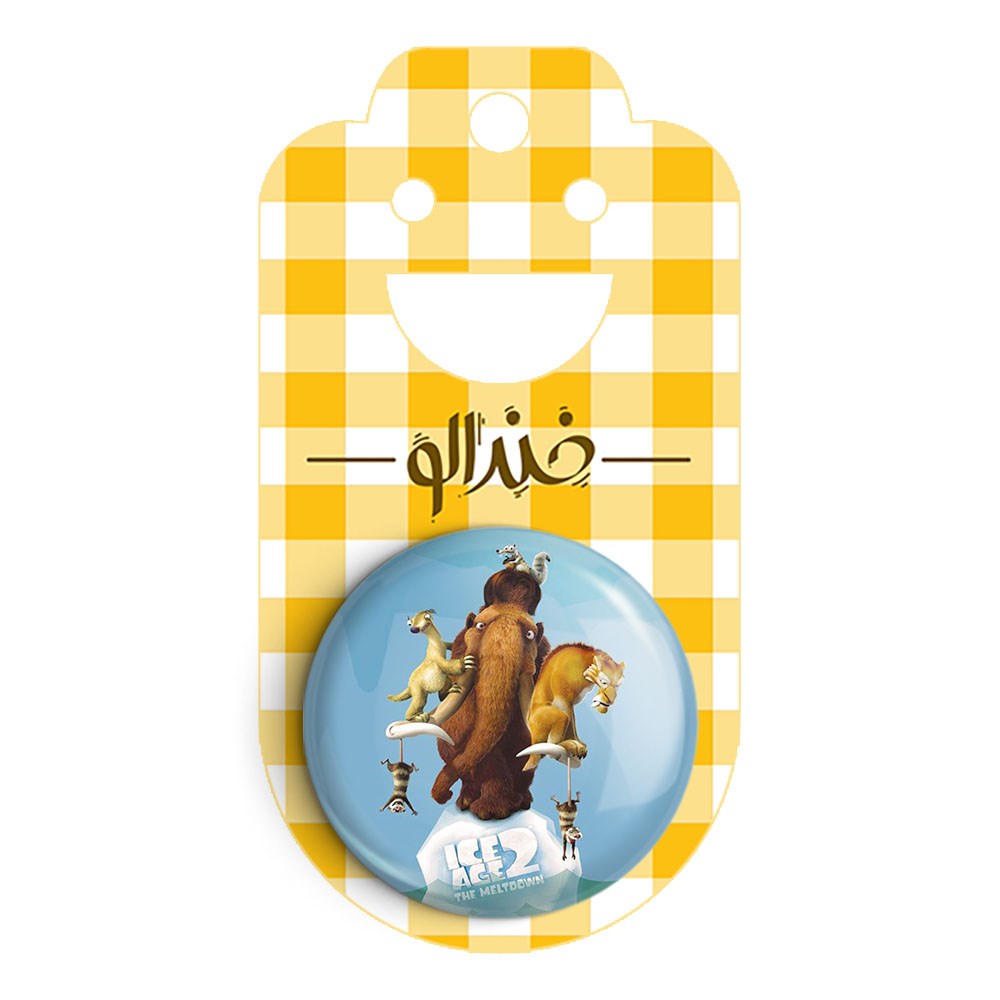 پیکسل 44 میلی متری انیمیشن عصر یخبندان Ice Age خندالو با روکش سلفون حرارتی مات مخملی ضدخش و قطعه پشتی رنگی تولید شده است.پلاستیکی پشت پیکسل با سوزن یک تکه ثابت و بدون لغزش و جا به جایی، ایستایی بسیار بهتری نسبت به پشتی فلزی پیکسل دارند که این مهم در تولید این محصول نیز رعایت شده است.
