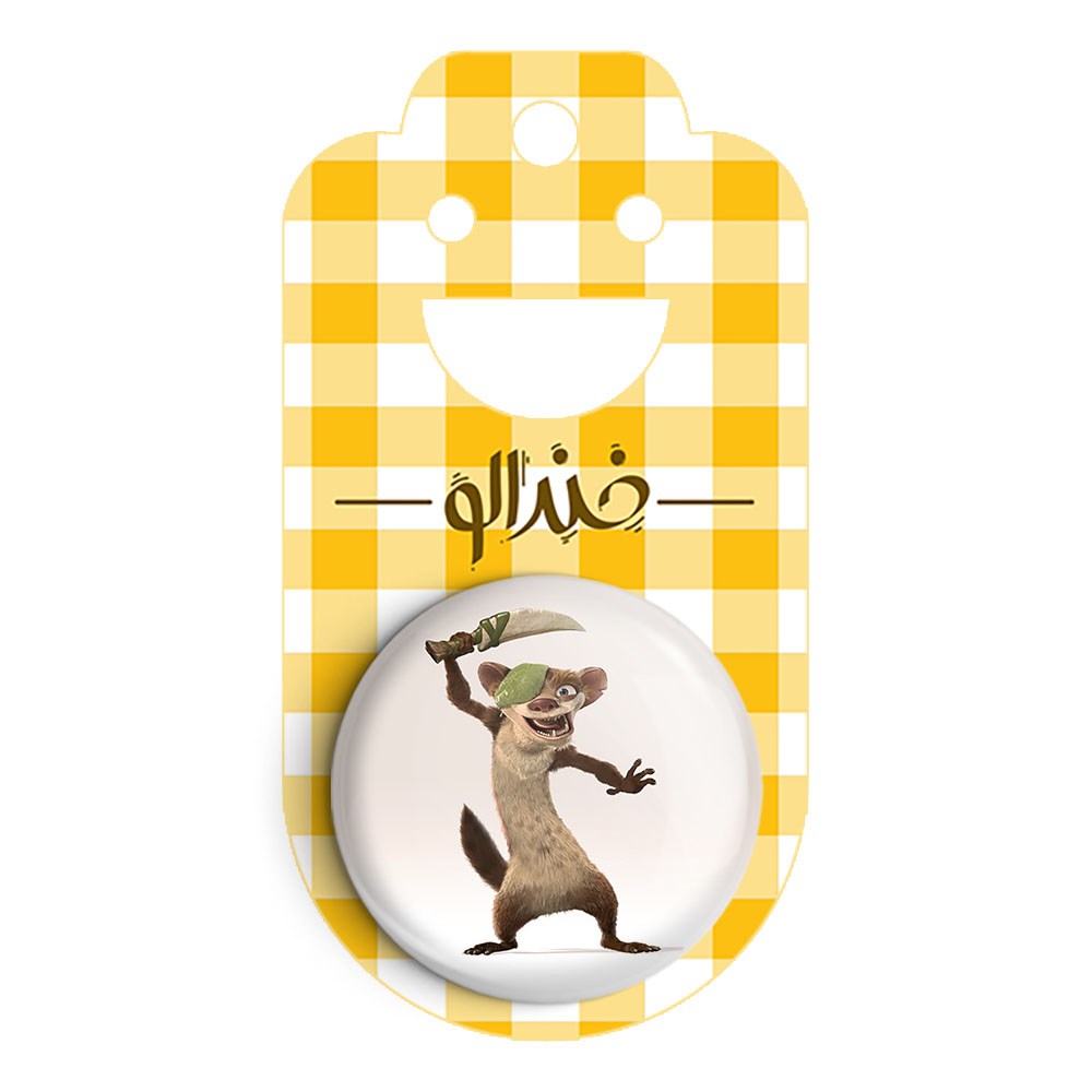 پیکسل 44 میلی متری انیمیشن عصر یخبندان Ice Age خندالو با روکش سلفون حرارتی مات مخملی ضدخش و قطعه پشتی رنگی تولید شده است.پلاستیکی پشت پیکسل با سوزن یک تکه ثابت و بدون لغزش و جا به جایی، ایستایی بسیار بهتری نسبت به پشتی فلزی پیکسل دارند که این مهم در تولید این محصول نیز رعایت شده است.