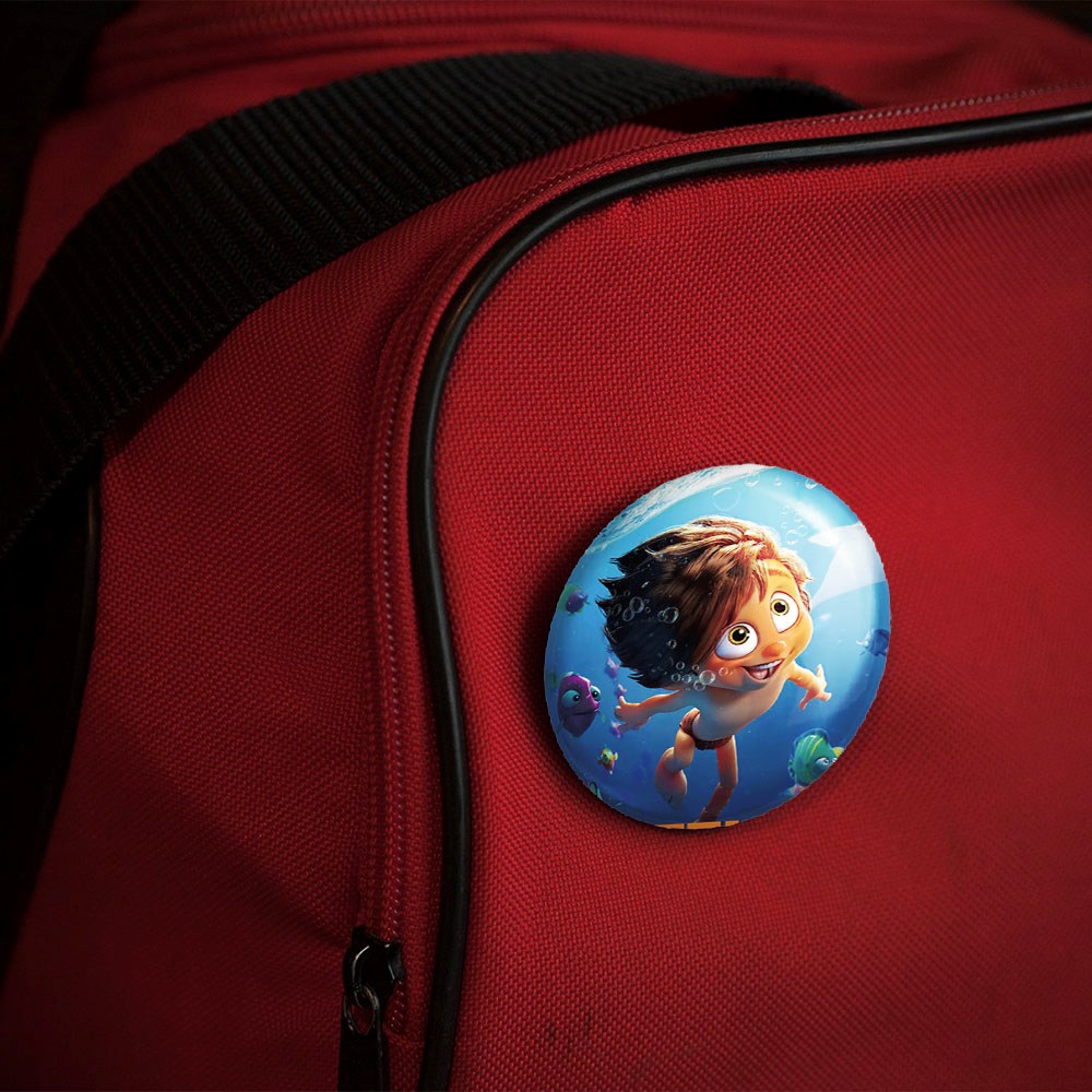 پیکسل 44 میلی متری انیمیشن پسر دلفینی خندالو با روکش سلفون حرارتی مات مخملی ضدخش و قطعه پشتی رنگی تولید شده است.پلاستیکی پشت پیکسل با سوزن یک تکه ثابت و بدون لغزش و جا به جایی، ایستایی بسیار بهتری نسبت به پشتی فلزی پیکسل دارند که این مهم در تولید این محصول نیز رعایت شده است.