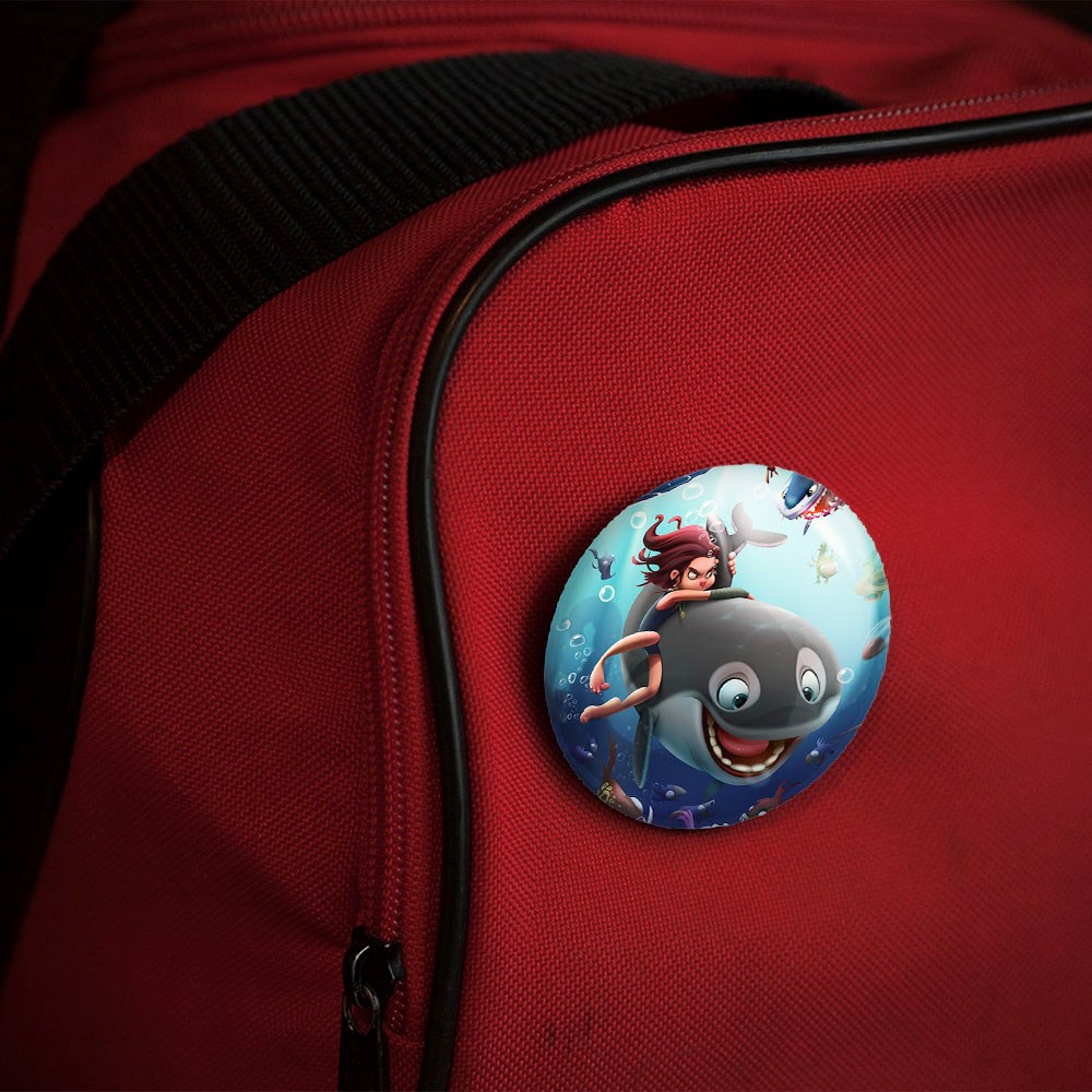 پیکسل 44 میلی متری انیمیشن پسر دلفینی خندالو با روکش سلفون حرارتی مات مخملی ضدخش و قطعه پشتی رنگی تولید شده است.پلاستیکی پشت پیکسل با سوزن یک تکه ثابت و بدون لغزش و جا به جایی، ایستایی بسیار بهتری نسبت به پشتی فلزی پیکسل دارند که این مهم در تولید این محصول نیز رعایت شده است.