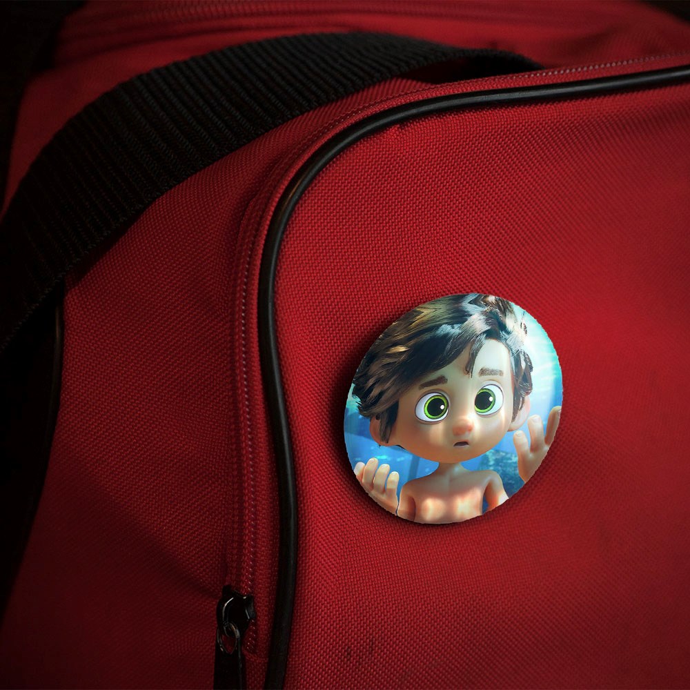 پیکسل 44 میلی متری انیمیشن پسر دلفینی خندالو با روکش سلفون حرارتی مات مخملی ضدخش و قطعه پشتی رنگی تولید شده است.پلاستیکی پشت پیکسل با سوزن یک تکه ثابت و بدون لغزش و جا به جایی، ایستایی بسیار بهتری نسبت به پشتی فلزی پیکسل دارند که این مهم در تولید این محصول نیز رعایت شده است.