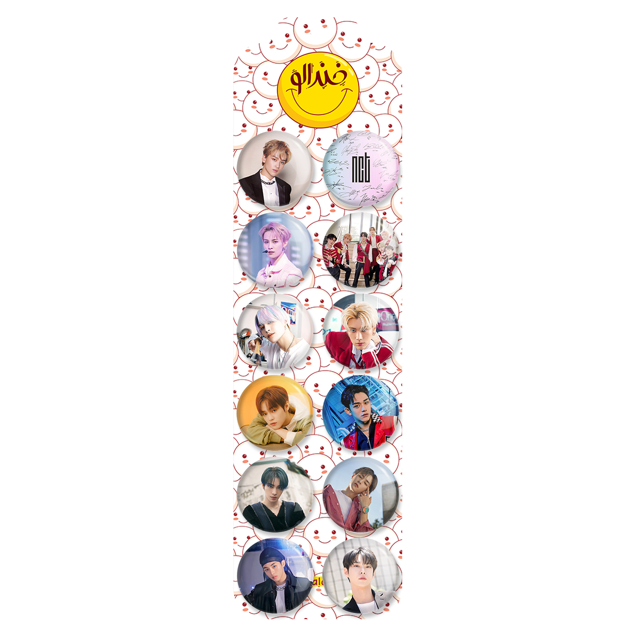 پک 12 عددی پیکسل خندالو طرح ان سی تی (NCT) با روکش سلفون حرارتی براق ضدخش و قطعه پشتی رنگی تولید شده است. قطعات پشتی از میان 6 رنگ سفید، مشکی، صورتی، زرد، آبی و قرمز که با توجه به نوع و رنگبندی طرح روی پیکسل انتخاب شده اند تولید می شود و در هر بسته بندی مطابق عکس محصول می باشد. قطعات پلاستیکی پشت پیکسل با سوزن یک تکه ثابت و بدون لغزش و جا به جایی، ایستایی بسیار بهتری نسبت به پشتی فلزی پیکسل دارند که این مهم در تولید این محصول نیز رعایت شده است.