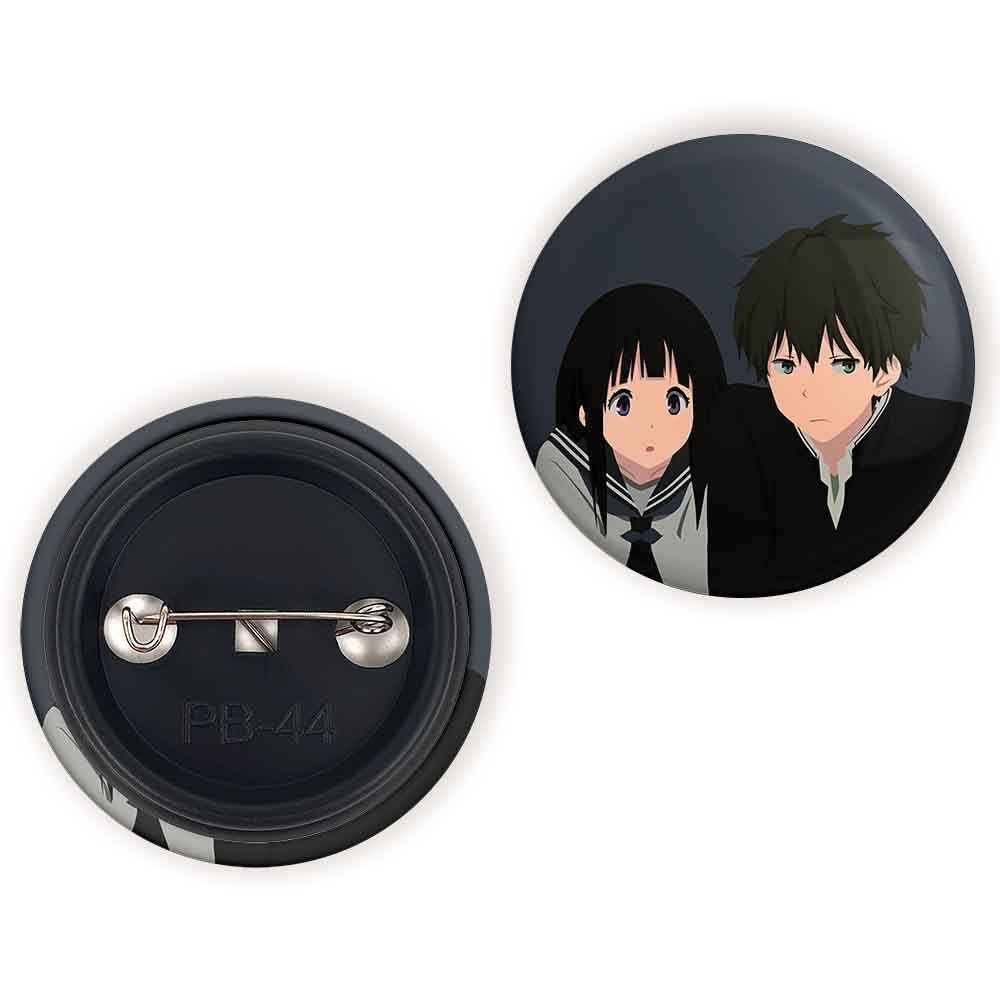 پیکسل 44 میلی متری اورکی و چیتاندا انیمه هیوکا Hyouka خندالو با روکش سلفون حرارتی مات مخملی ضدخش و قطعه پشتی رنگی تولید شده است.پلاستیکی پشت پیکسل با سوزن یک تکه ثابت و بدون لغزش و جا به جایی، ایستایی بسیار بهتری نسبت به پشتی فلزی پیکسل دارند که این مهم در تولید این محصول نیز رعایت شده است.