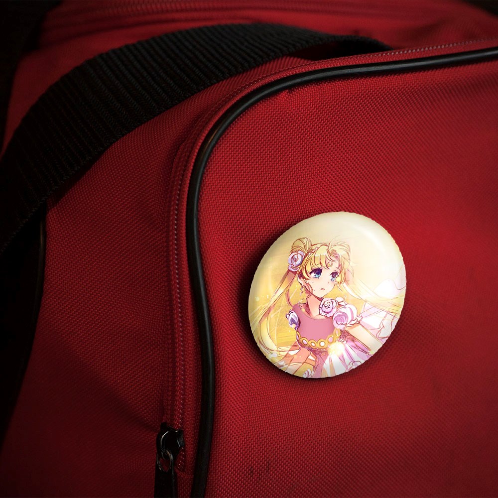 پیکسل 44 میلی متری اوساگی تسوکینو انیمه سیلور مون Sailor Moon خندالو با روکش سلفون حرارتی مات مخملی ضدخش و قطعه پشتی رنگی تولید شده است.پلاستیکی پشت پیکسل با سوزن یک تکه ثابت و بدون لغزش و جا به جایی، ایستایی بسیار بهتری نسبت به پشتی فلزی پیکسل دارند که این مهم در تولید این محصول نیز رعایت شده است.