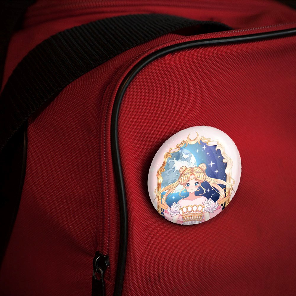 پیکسل 44 میلی متری اوساگی تسوکینو انیمه سیلور مون Sailor Moon خندالو با روکش سلفون حرارتی مات مخملی ضدخش و قطعه پشتی رنگی تولید شده است.پلاستیکی پشت پیکسل با سوزن یک تکه ثابت و بدون لغزش و جا به جایی، ایستایی بسیار بهتری نسبت به پشتی فلزی پیکسل دارند که این مهم در تولید این محصول نیز رعایت شده است.