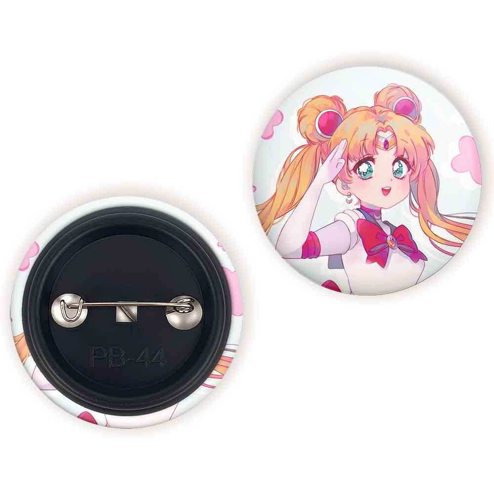 پیکسل 44 میلی متری اوساگی تسوکینو انیمه سیلور مون Sailor Moon خندالو با روکش سلفون حرارتی مات مخملی ضدخش و قطعه پشتی رنگی تولید شده است.پلاستیکی پشت پیکسل با سوزن یک تکه ثابت و بدون لغزش و جا به جایی، ایستایی بسیار بهتری نسبت به پشتی فلزی پیکسل دارند که این مهم در تولید این محصول نیز رعایت شده است.