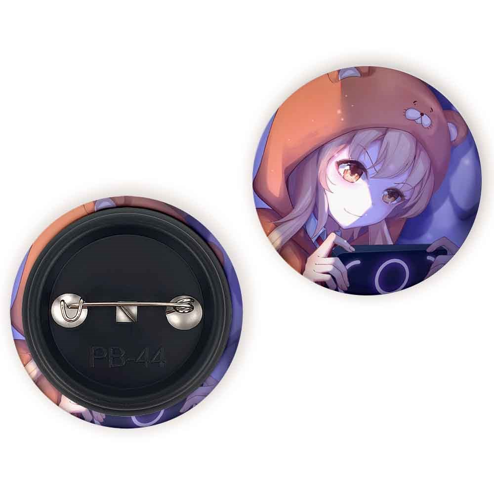 پیکسل 44 میلی متری اومارو انیمه اوماروچان Umaru Chan خندالو با روکش سلفون حرارتی مات مخملی ضدخش و قطعه پشتی رنگی تولید شده است.پلاستیکی پشت پیکسل با سوزن یک تکه ثابت و بدون لغزش و جا به جایی، ایستایی بسیار بهتری نسبت به پشتی فلزی پیکسل دارند که این مهم در تولید این محصول نیز رعایت شده است.
