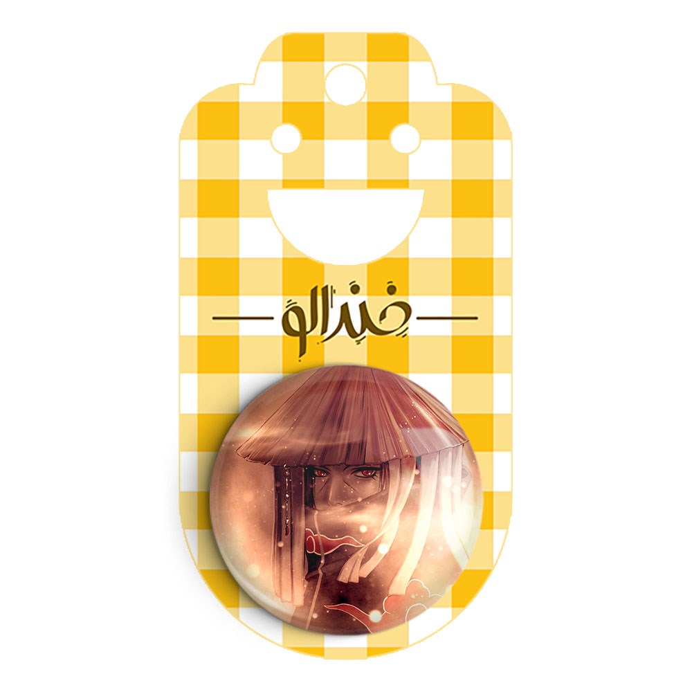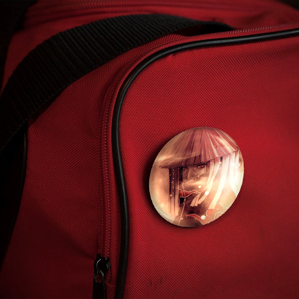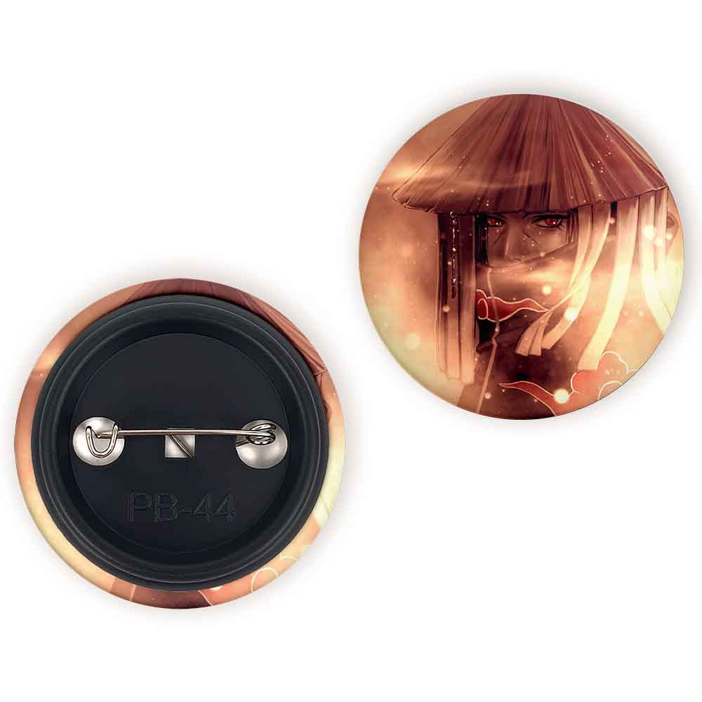 پیکسل 44 میلی متری اوچیها ایتاچی انیمه ناروتو Naruto خندالو با روکش سلفون حرارتی مات مخملی ضدخش و قطعه پشتی رنگی تولید شده است.پلاستیکی پشت پیکسل با سوزن یک تکه ثابت و بدون لغزش و جا به جایی، ایستایی بسیار بهتری نسبت به پشتی فلزی پیکسل دارند که این مهم در تولید این محصول نیز رعایت شده است.